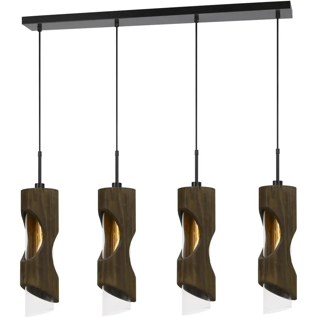 Spheroid 4 Light 40 Inch Black And Wood Island Chandelier Ceiling Light