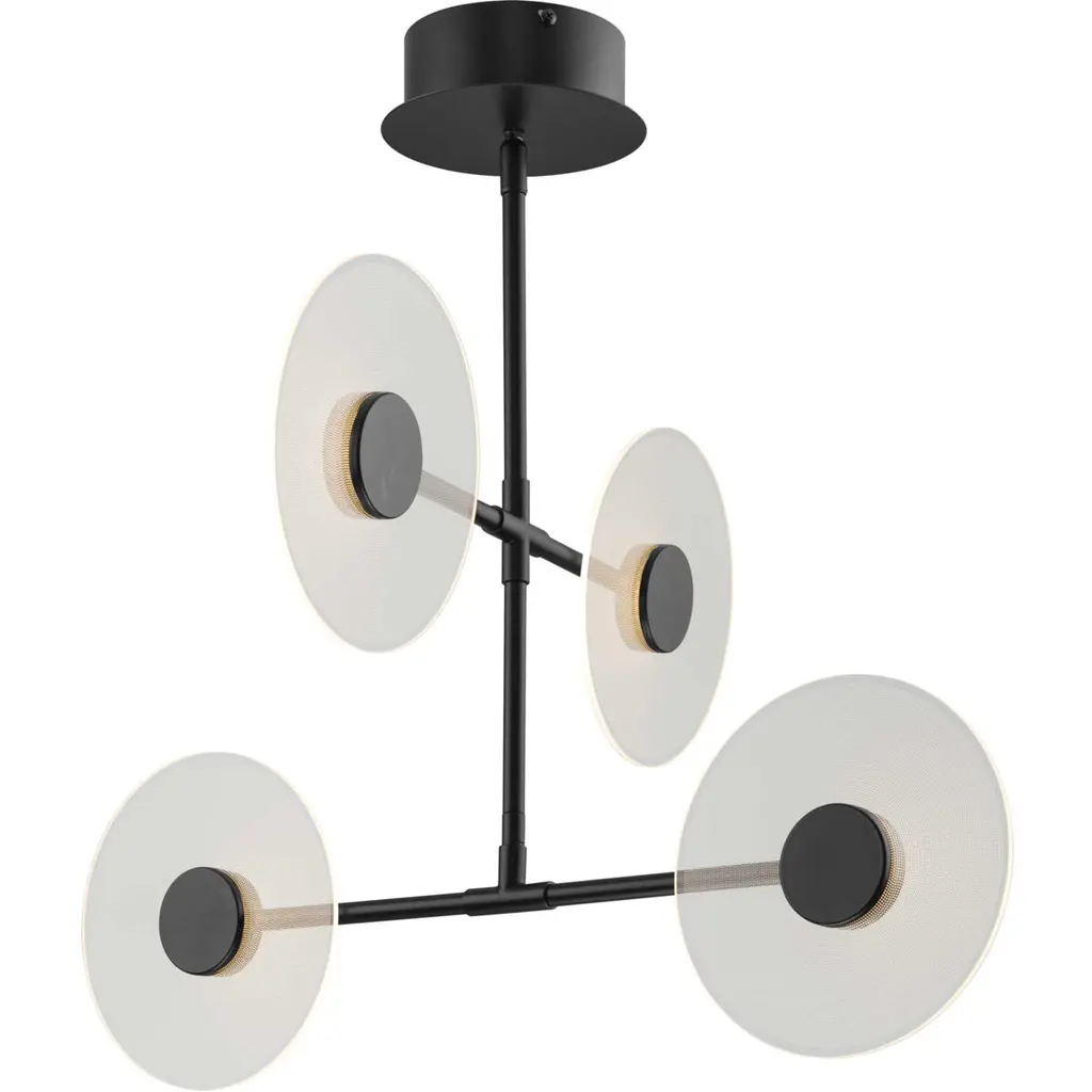 Modern minimalism meets the future of industrial style in the Spoke LED Collection 4-Light Matte Black LED Modern Hanging Chandelier Light.Sleek rods coated in a beautiful matte black finish anchor the luminous circles for a retro yet contemporary vibe. A slim disk of integrated LEDs casts an ethereal glow that creates a multi-directional wash of even light.