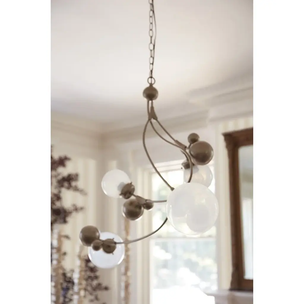 Steel and glass berries of multiple sizes, create a sculptural focal point in any setting. The Sprig chandelier’s botanical overtones are enhanced by opaline, clear water glass, or opal glass options, and your choice of finishes. Versatile and visually balanced, it is a perfect choice to hang individually, or in groupings. All Hubbardton Forge products are hand-crafted to last one at a time in Vermont.
