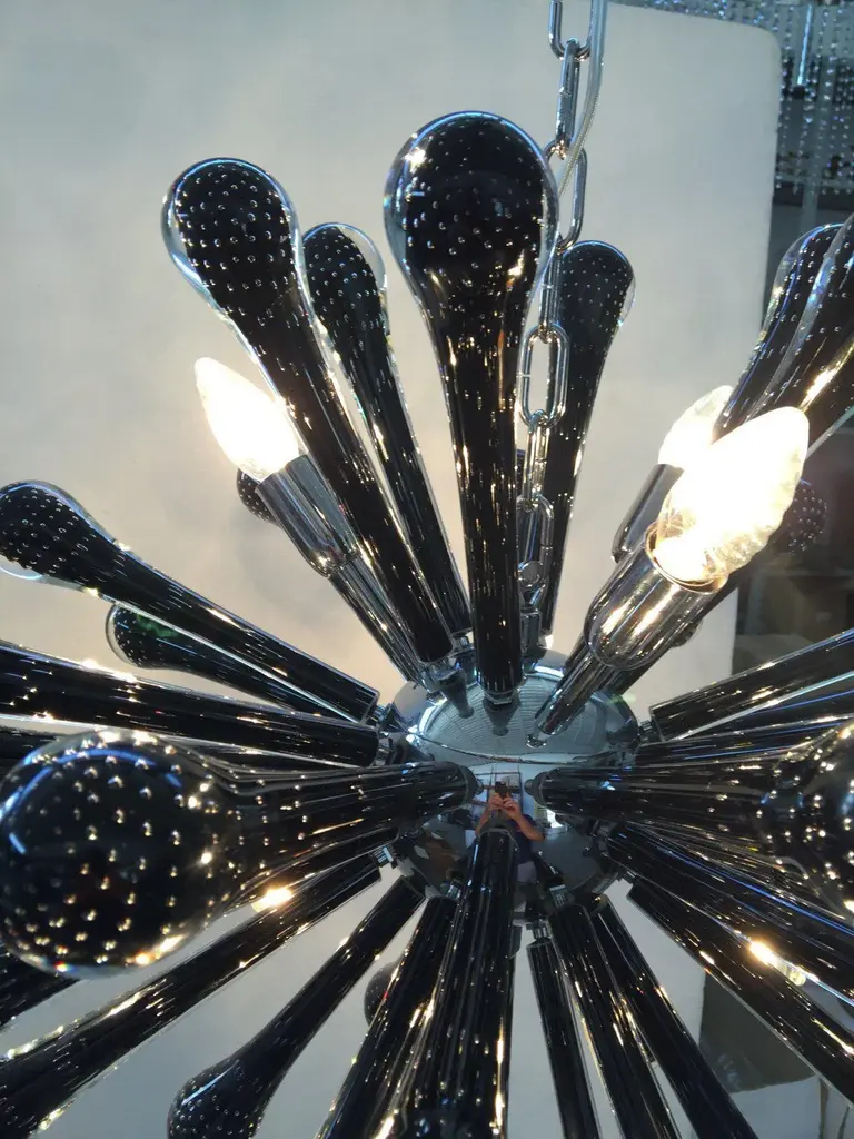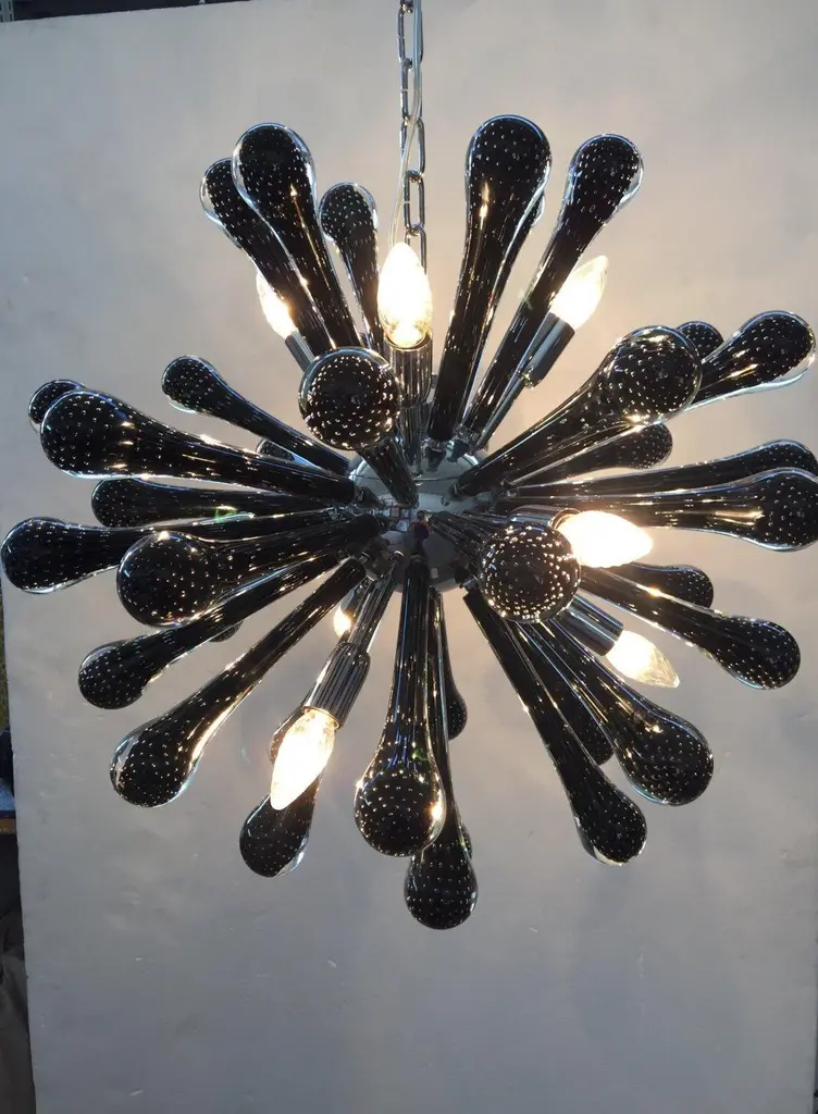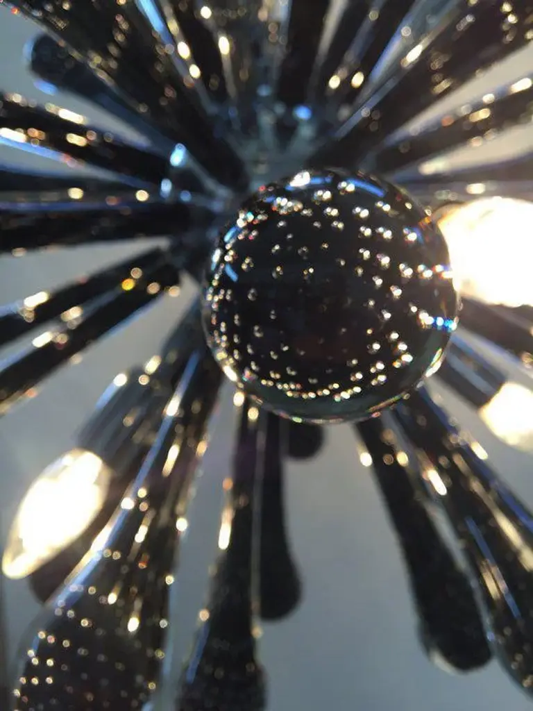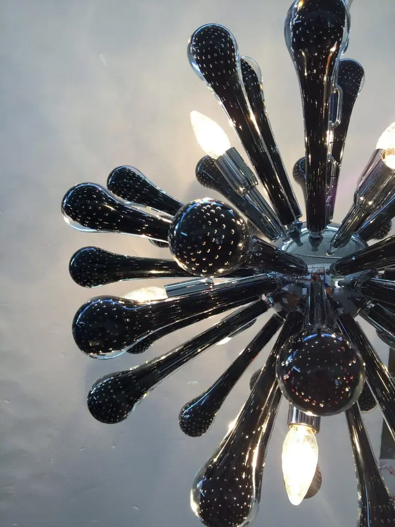 Sputnik Chandelier With Black “Drops” With Bubbles Inside