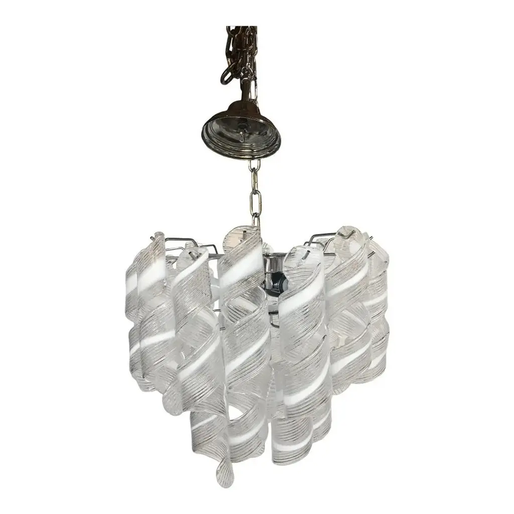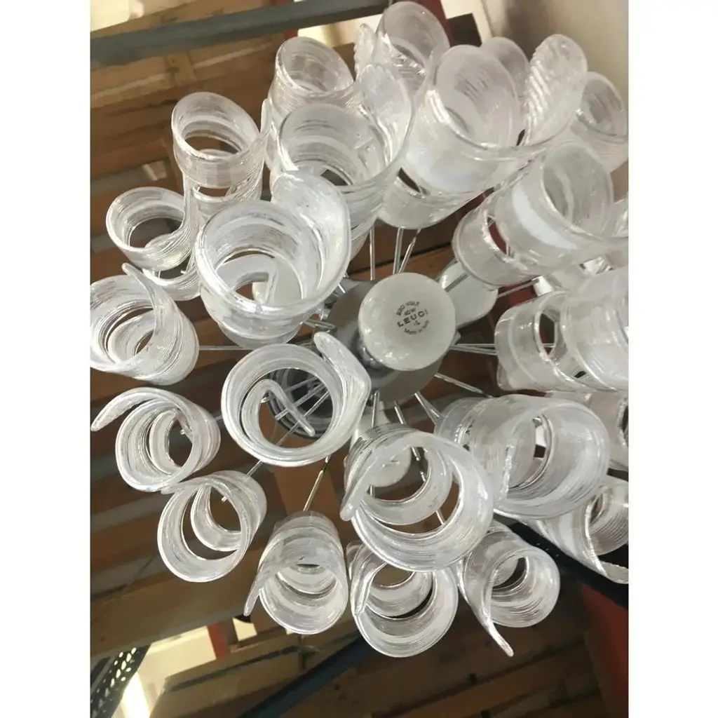 Murano Glass Sputnik Chandelier with Swirling Italian Glass clear and white Daimeter 50 cm = 19.7" Metal frame in kromo and all clear glass , italian Murano glass made in Venice Italy Up to 250V (Europe/UK Standard).