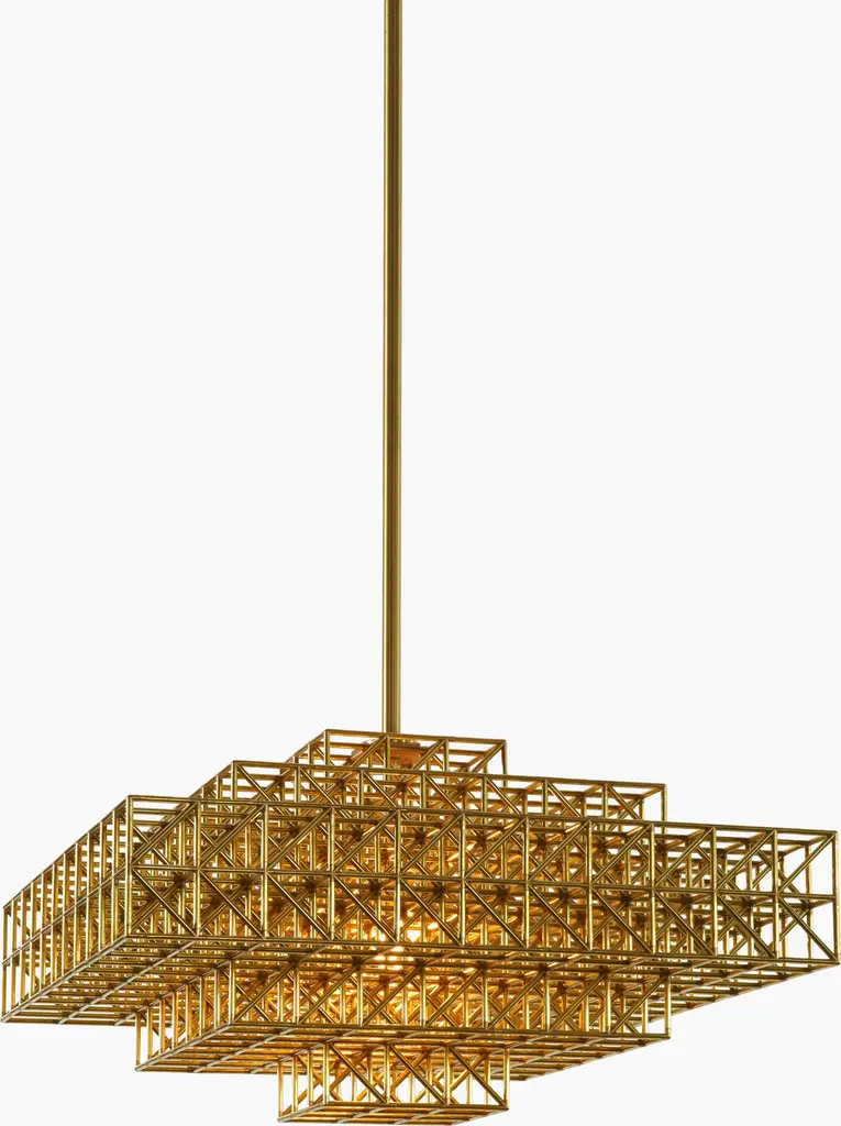 A sequence of geometry envelops a room and delivers a surrounding light, all while maintaining a weightless appearance in the Stack LED Chandelier from Ridgely Studio. Starting as a simple line drawing, this chandelier’s graphic appearance underscores creator Zac Ridgely’s idea of approaching his work with an artistic edge. The chandelier hangs with fine wires that visually disappear for a floating look. Crafted in steel, this chandelier’s framework holds one’s attention with concentric rectilinear shapes that line up with a modern or contemporary home’s architecture. A slim array of LEDs follows the framework’s edges to create uniform passes of light and a delicate silhouette.