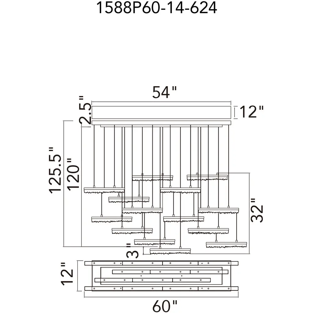 Stagger Led 60 Inch Brass Chandelier Ceiling Light