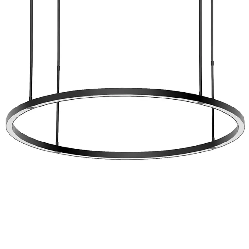 The Stagger LED Ring Chandelier from Visual Comfort Modern, designed by Mick De Giulio, masterfully integrates with the surrounding architecture yet commands attention with its impressive scale. This modern ring chandelier redefines elegance, offering a bold statement that transcends the ordinary. With a single power source, it casts a captivating glow that enchants the senses, turning any space into a sanctuary of sophisticated luxury. Its striking design illuminates and elevates the ambiance, creating a refined, opulent atmosphere.