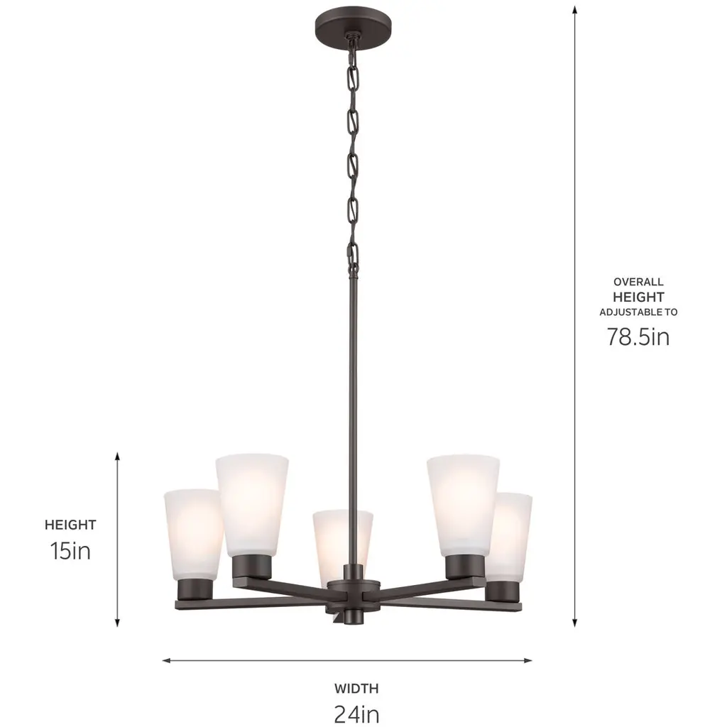 This 5 light Chandelier from the Stamos collection by Kichler will enhance your home with a perfect mix of form and function. The features include a Olde Bronze finish applied by experts. This item qualifies for free shipping!
