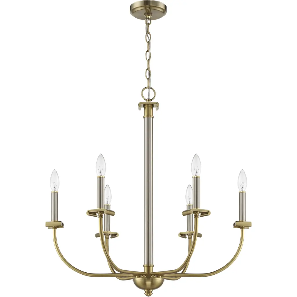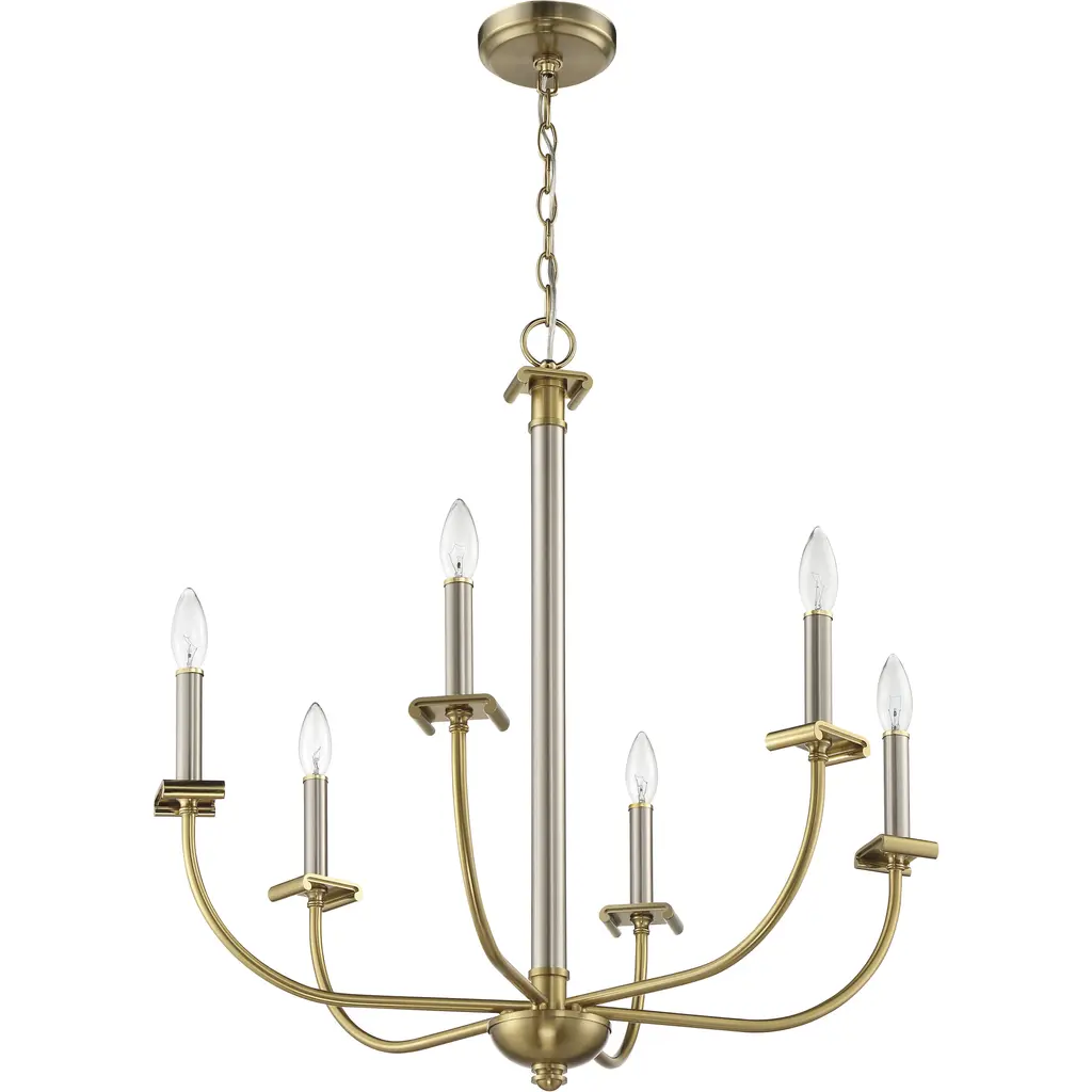 Stanza 6 Light 26 Inch Brushed Polished Nickel / Satin Brass Chandelier Ceiling Light