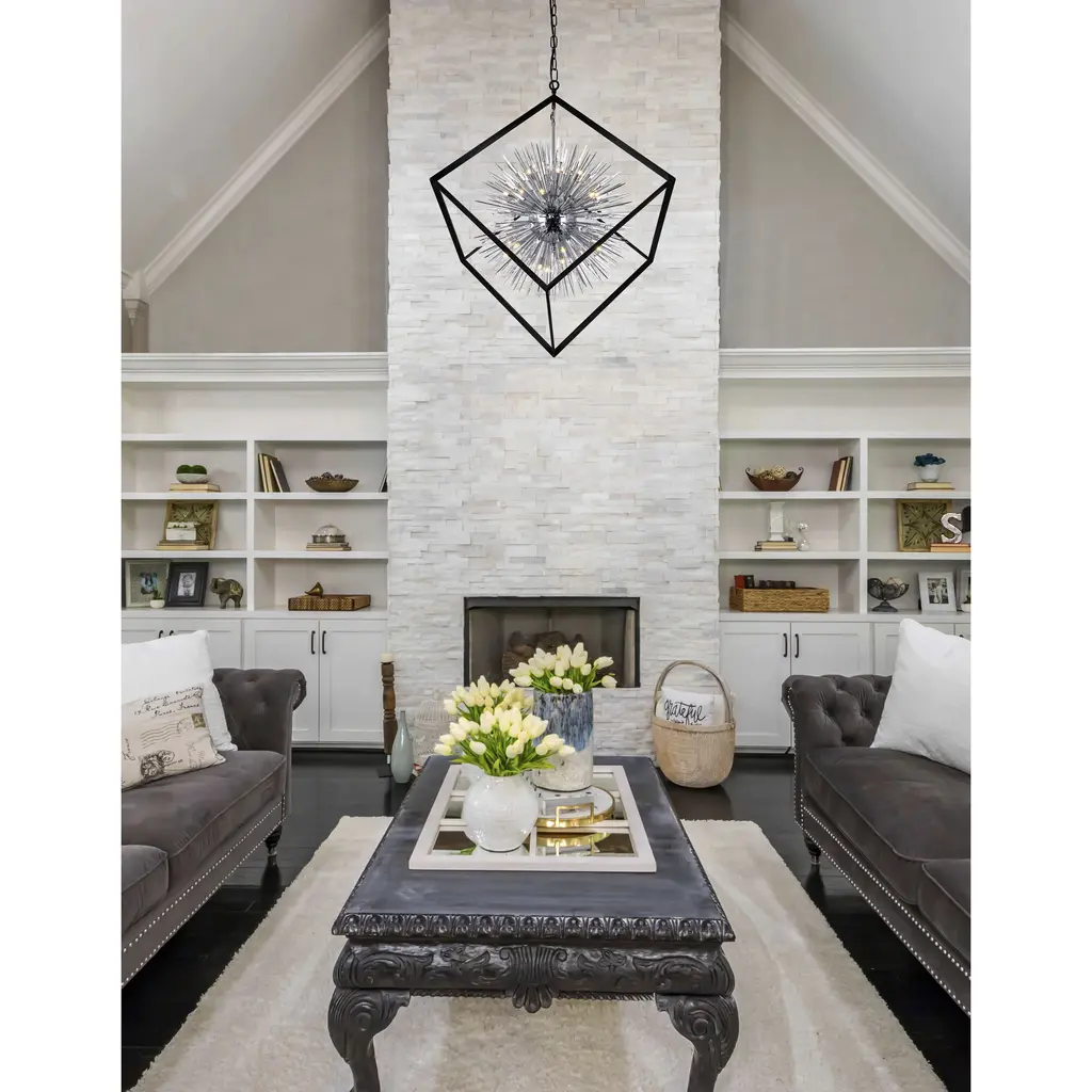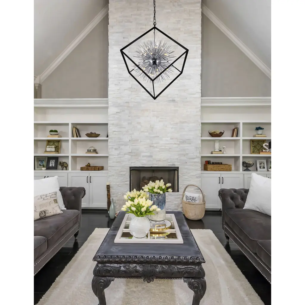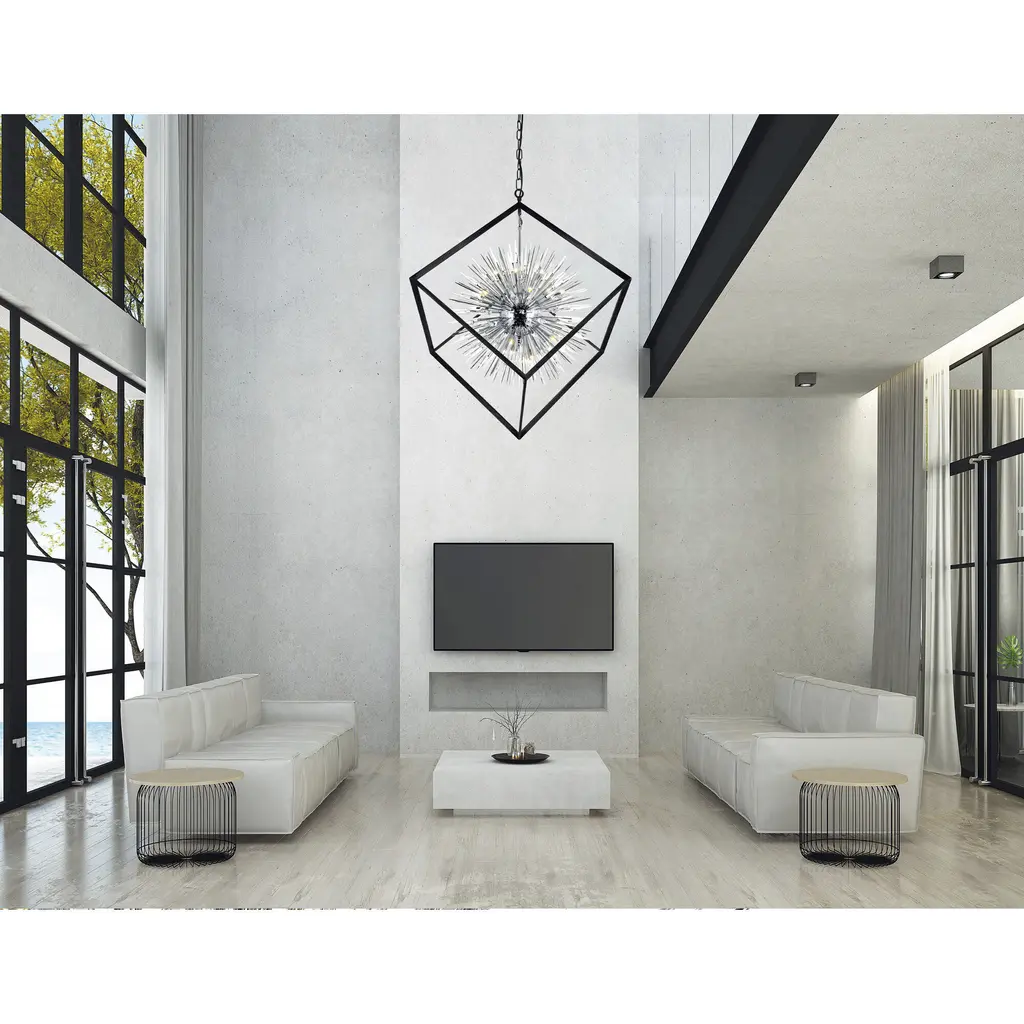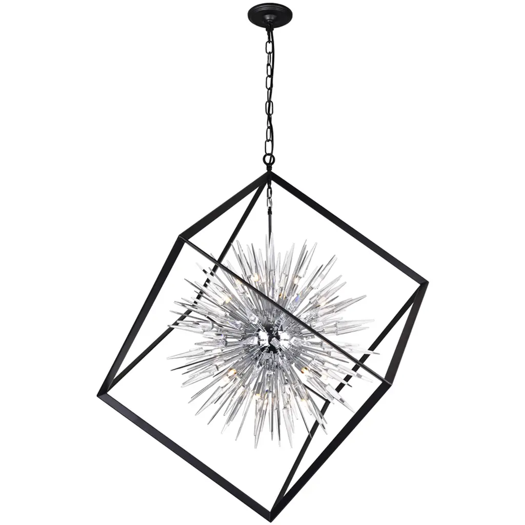 Starburst 20 Light 44 Inch Chrome And Black Down Chandelier Ceiling Light