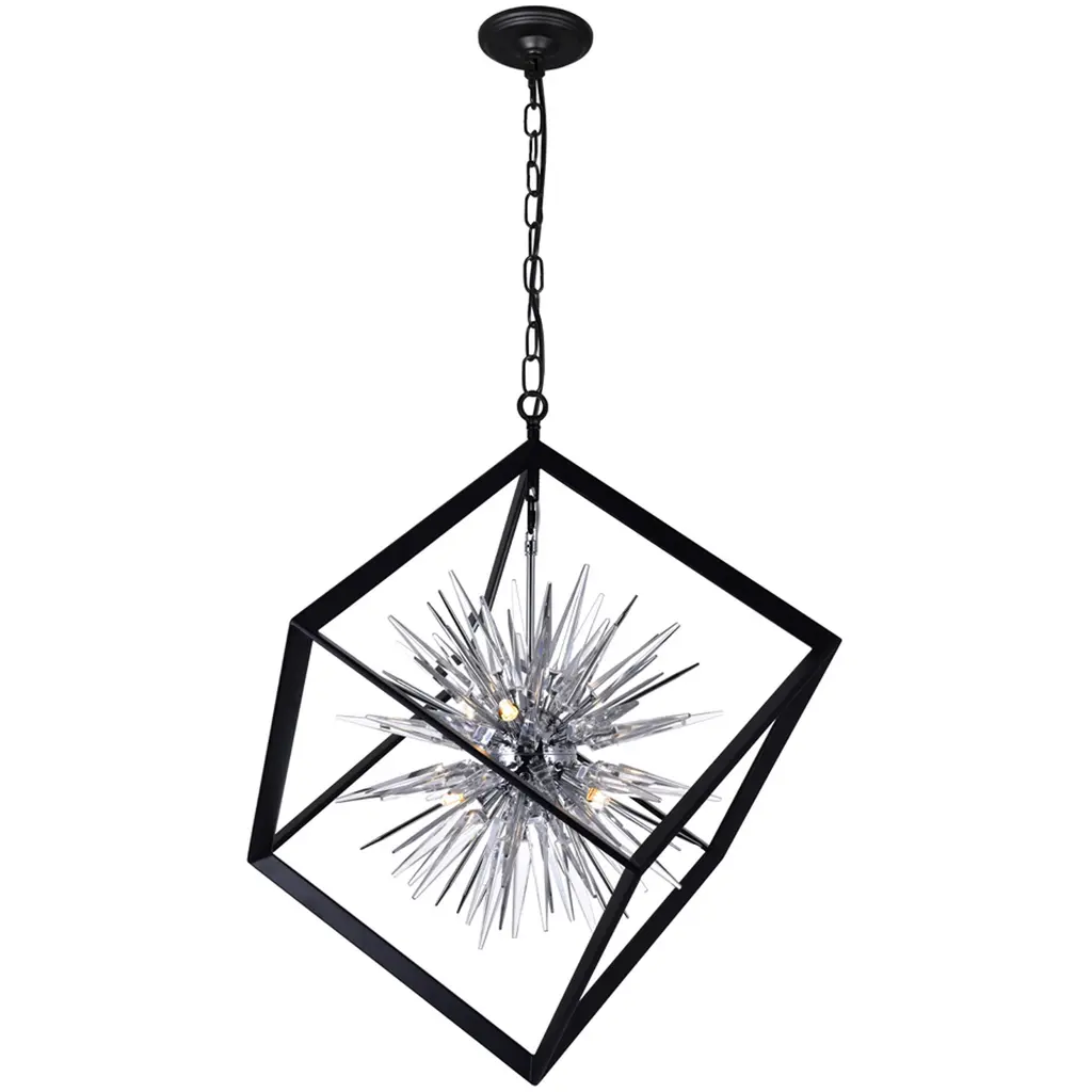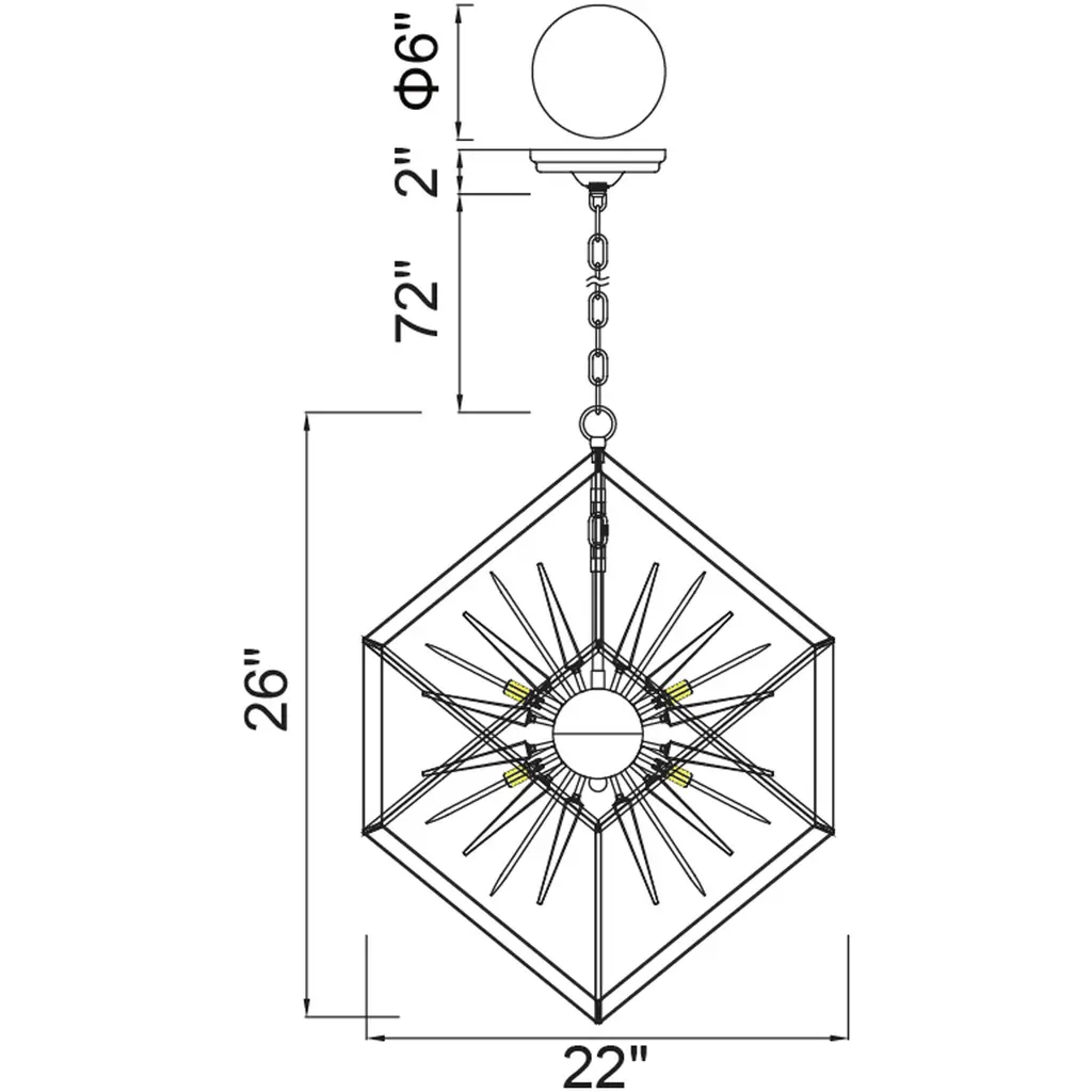Starburst 6 Light 22 Inch Chrome And Black Down Chandelier Ceiling Light