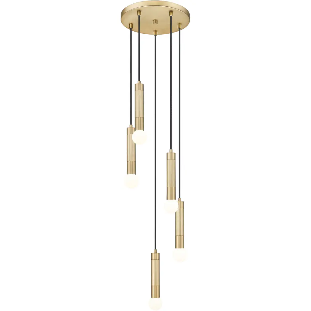 Rich and warm, this modern five-light chandelier sets a sophisticated ambiance over your dining table or living room seating group. Varying lengths of braided cords host elongated tubes and petite lights, casting even ambient illumination perfect or daily enjoyment, entertaining and everything in between. Its modern gold finish gleams in the light and offers upgraded presence to surrounding decor.