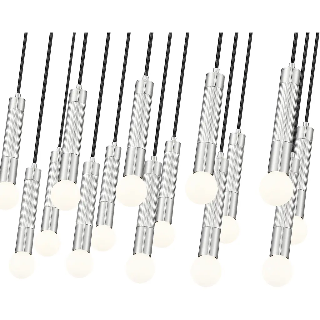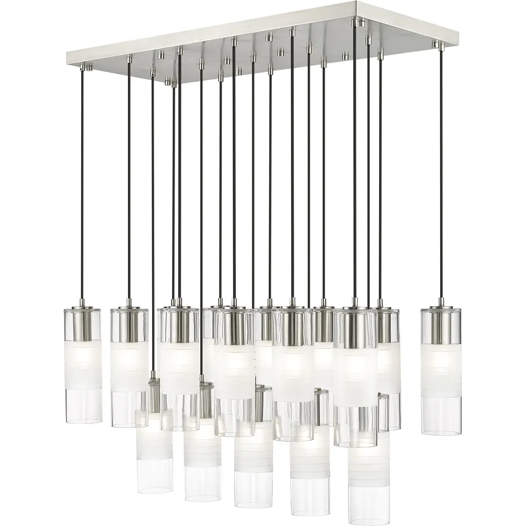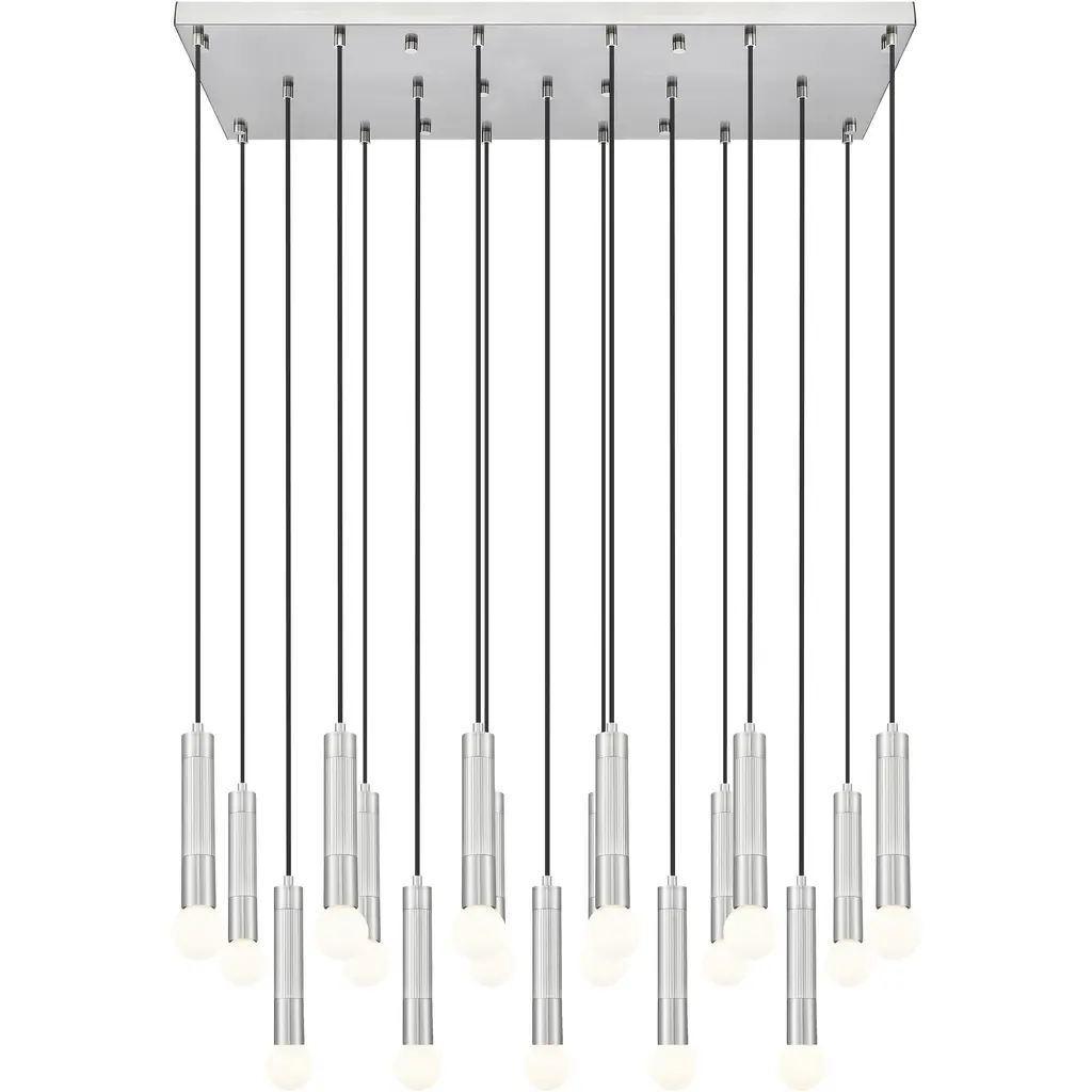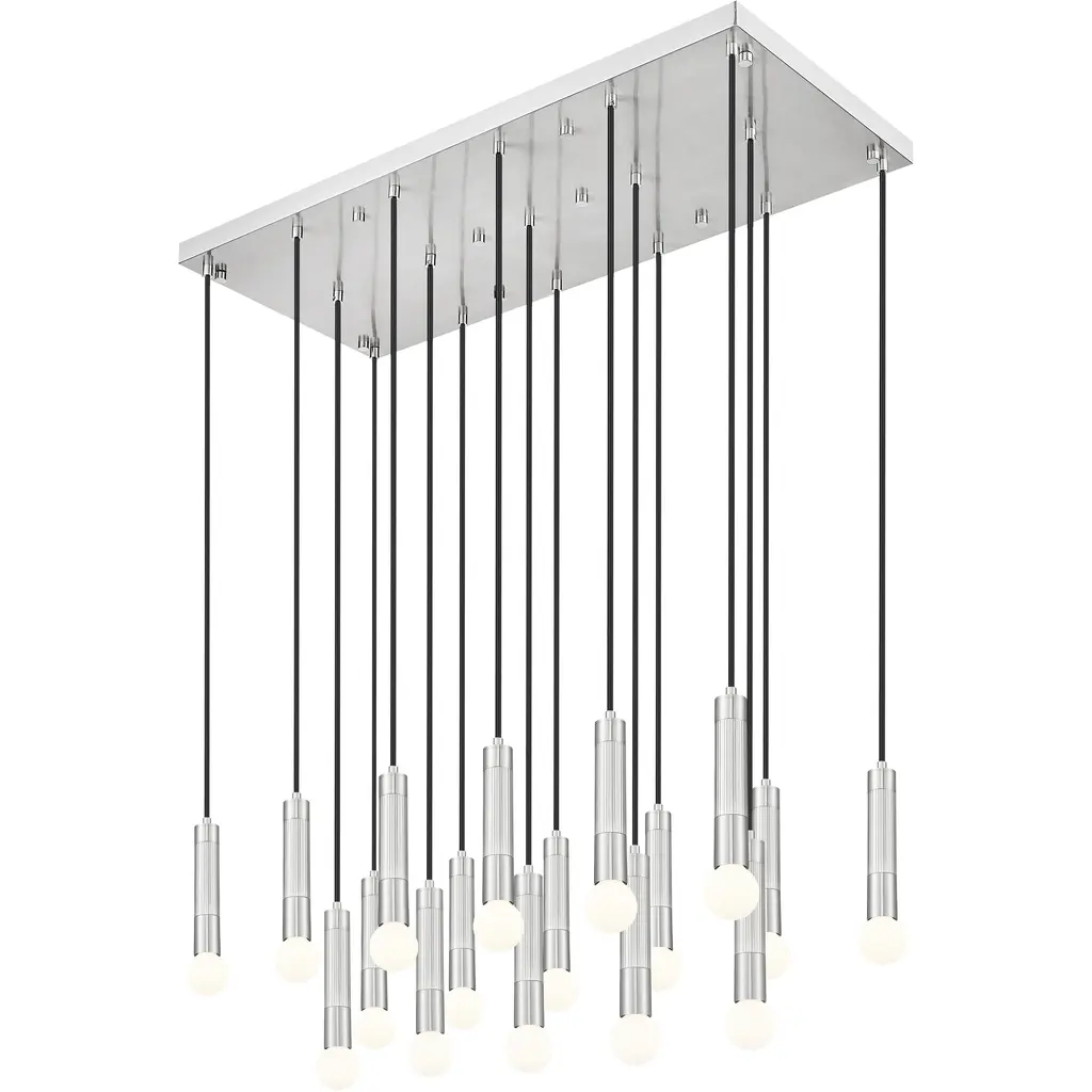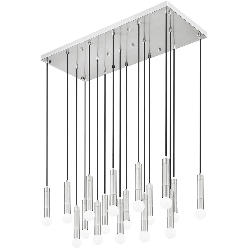 Bring fresh style over a kitchen island or dining table with a modern 17-light linear chandelier. Elongated tubes suspend from braided cords and host petite lights, casting refined ambient illumination over your space. Its gleaming brushed nickel finish is a perfect complement to a variety of styles and design motifs.