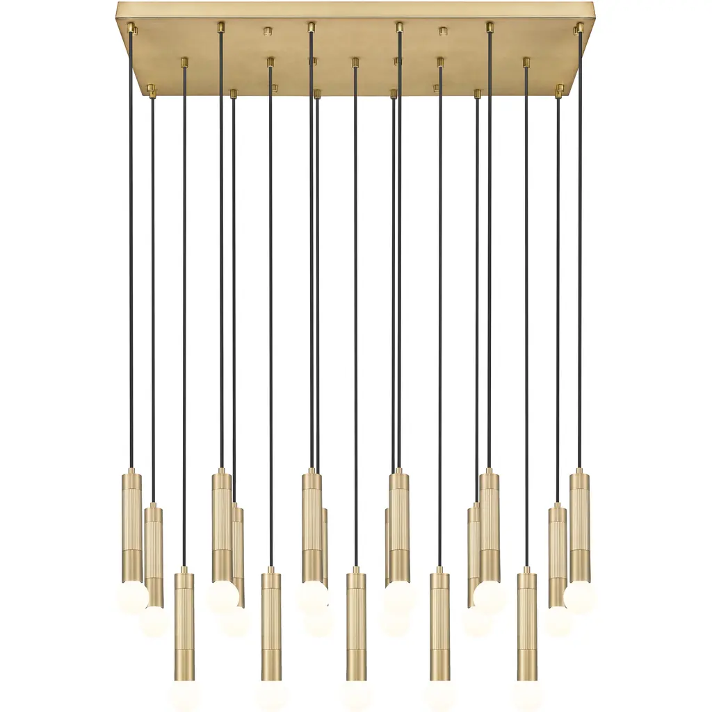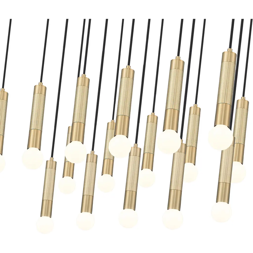 Modern gold sets a sophisticated tone for this contemporary 17-light linear chandelier. Beautiful over an inviting kitchen island or elongated living space, the linear design features a rectangular canopy and braided cords that host decorative tubes and petite lights for excellent ambiance and illumination. Its rich finish lends wonderful warmth to surrounding decor.