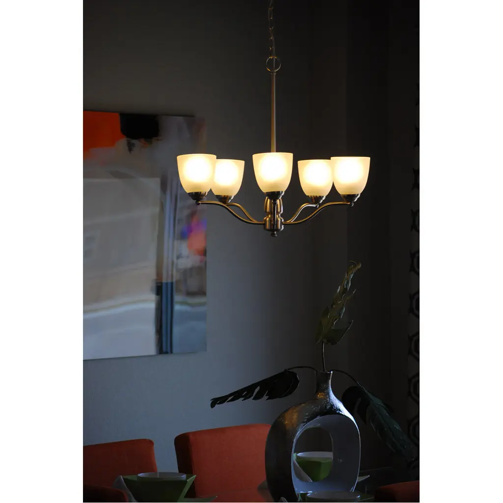 A transitional look that works in a broad range of interiors featuring metal frames finished in either Oiled Rubbed Bronze for the traditional home or Satin Nickel for a more contemporary look. Simple Frost glass shades compliment the overall design.