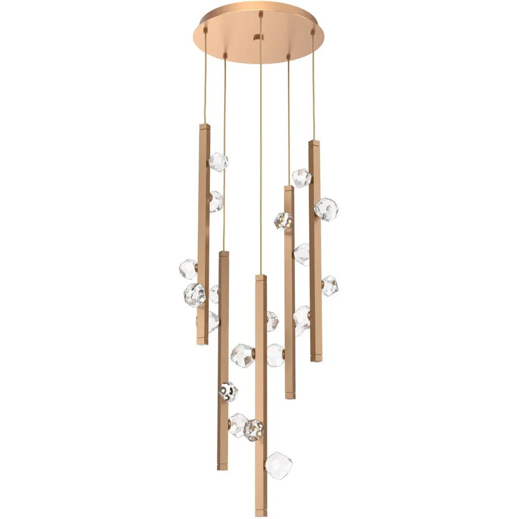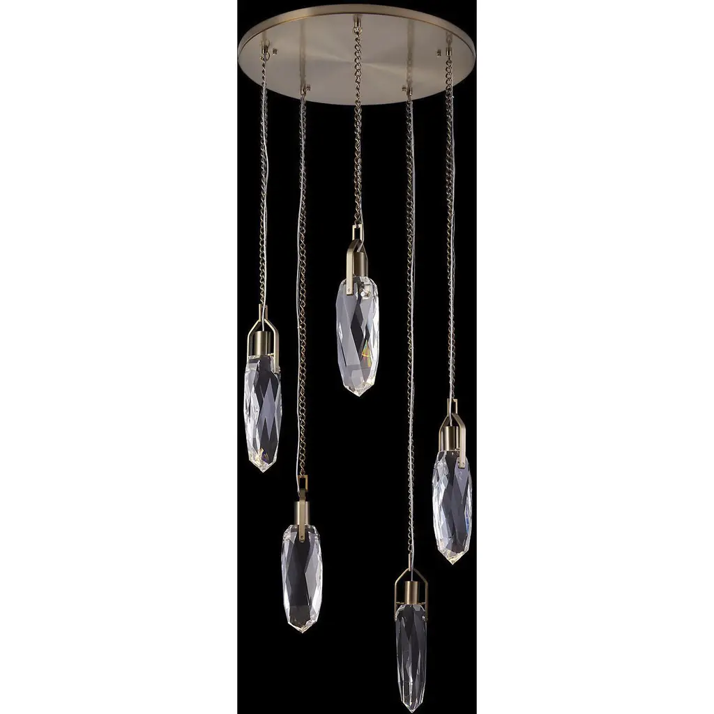 Stella Round Multi-Port 5 Pc.-Gilded Brass-Clear Zircon-Stainless Steel Cable-LED