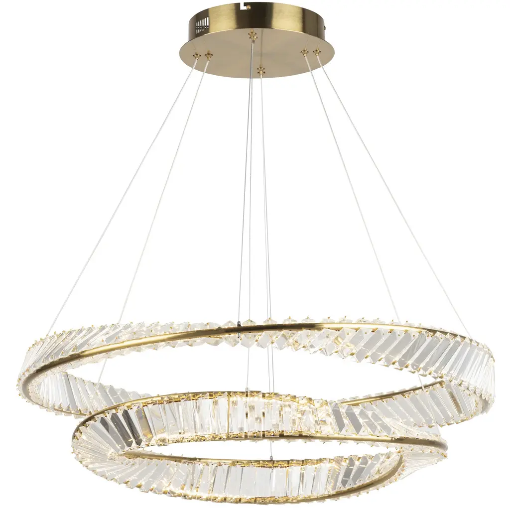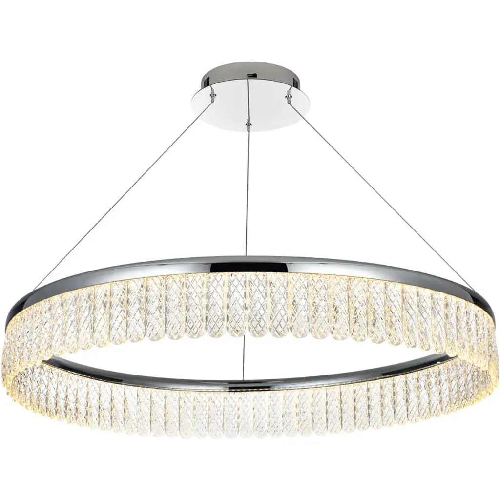 The Stella LED Chandelier by Artcraft is the epitome of class and elegance. This luxurious two-tier chandelier is made from robust iron and crystal, reflecting a distinctly Glam quality. Ideally suited for kitchen spaces looking for an upgrade, this fixture provides a sparkling focal point. Its ring shape, combined with crystal shades, offers an exquisite design. The chandelier gives off warm LED light and is hardwired, assuring both quality and security in its service.
