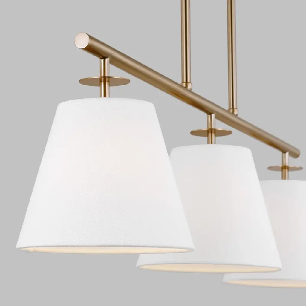 The three-light single-tier chandelier has a rectangular canopy that suspends three fabric cones creating a beautiful display of charm. This fixture delivers contemporary style with a vintage-inspired twist.