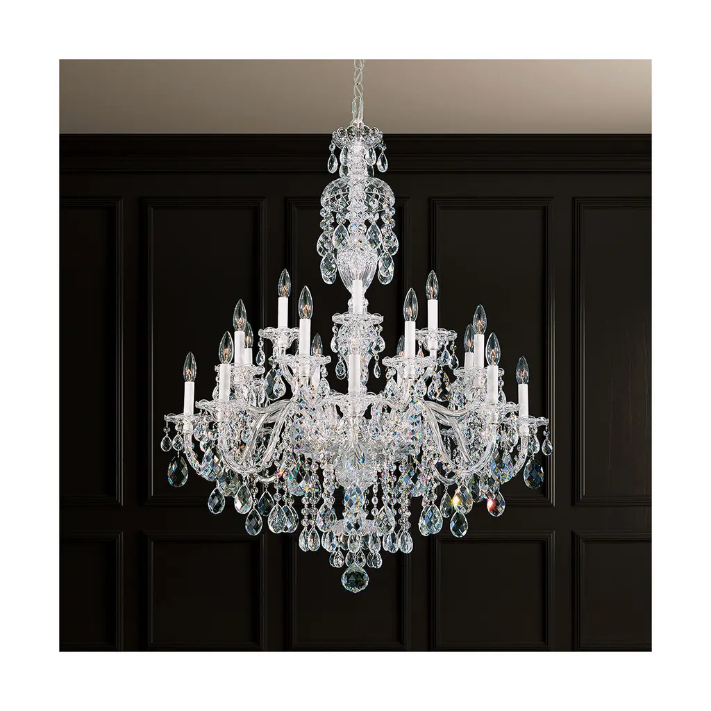 In the eighteenth century advances in glassmaking techniques and the demands of rich patrons made all-glass chandeliers the ultimate statement of class. Sterling, an all-crystal chandelier with hand-formed crystal arms and finely cut pendants, column and dishes, is the ultimate illustration of historical chandeliers' dazzling by light.'