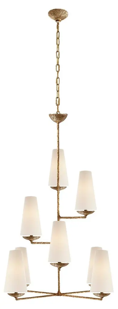Contemporary Ivory And Gold Metal Chandelier Featuring Eight Individual Cylinder Shades. Comes With 96 in. of Chain. Eight Lights.