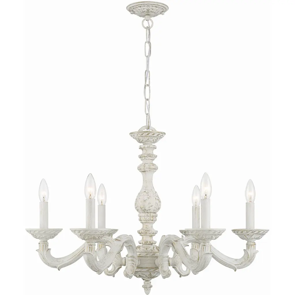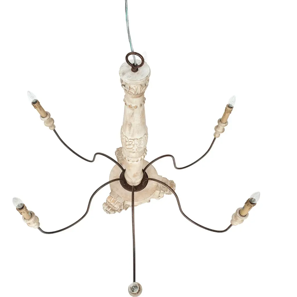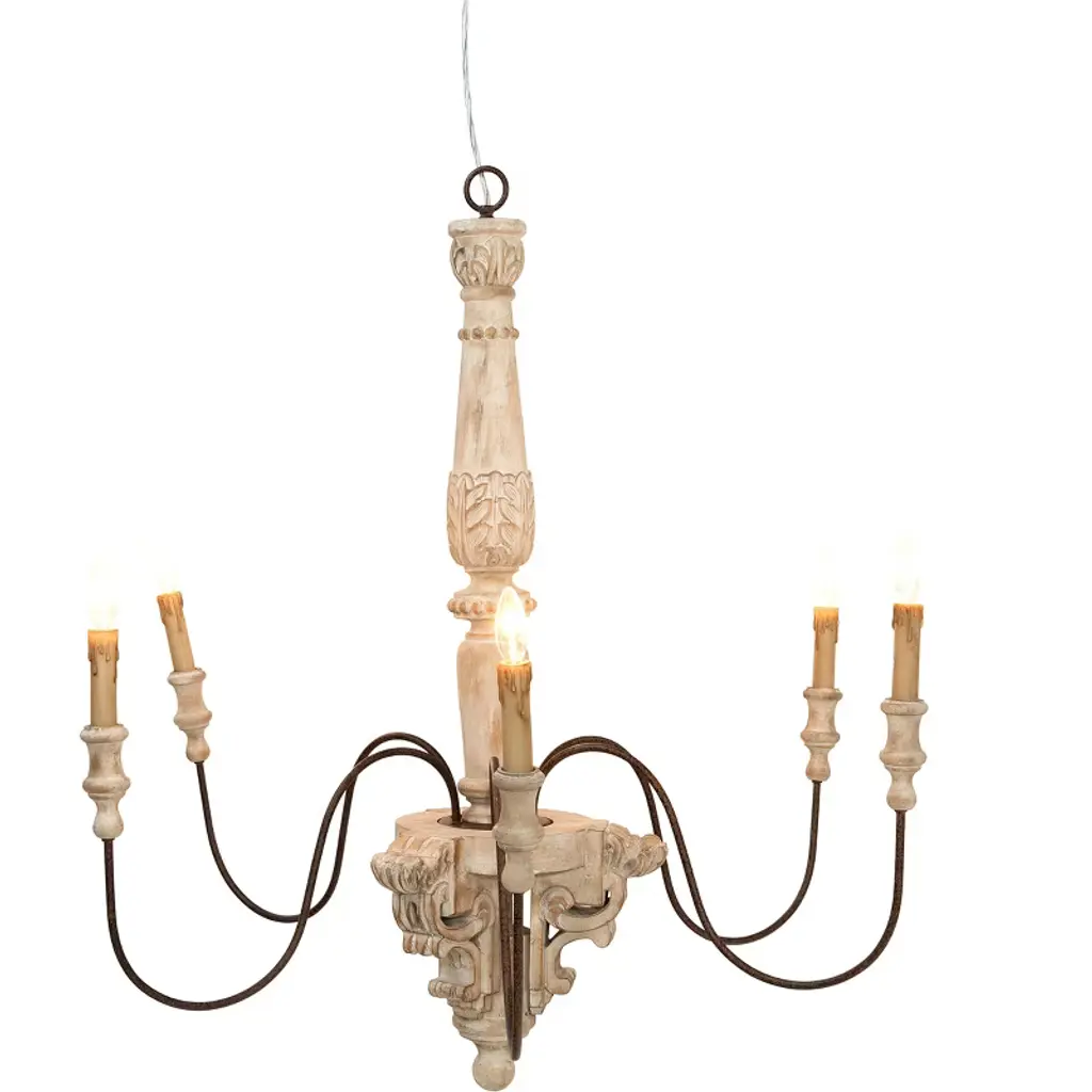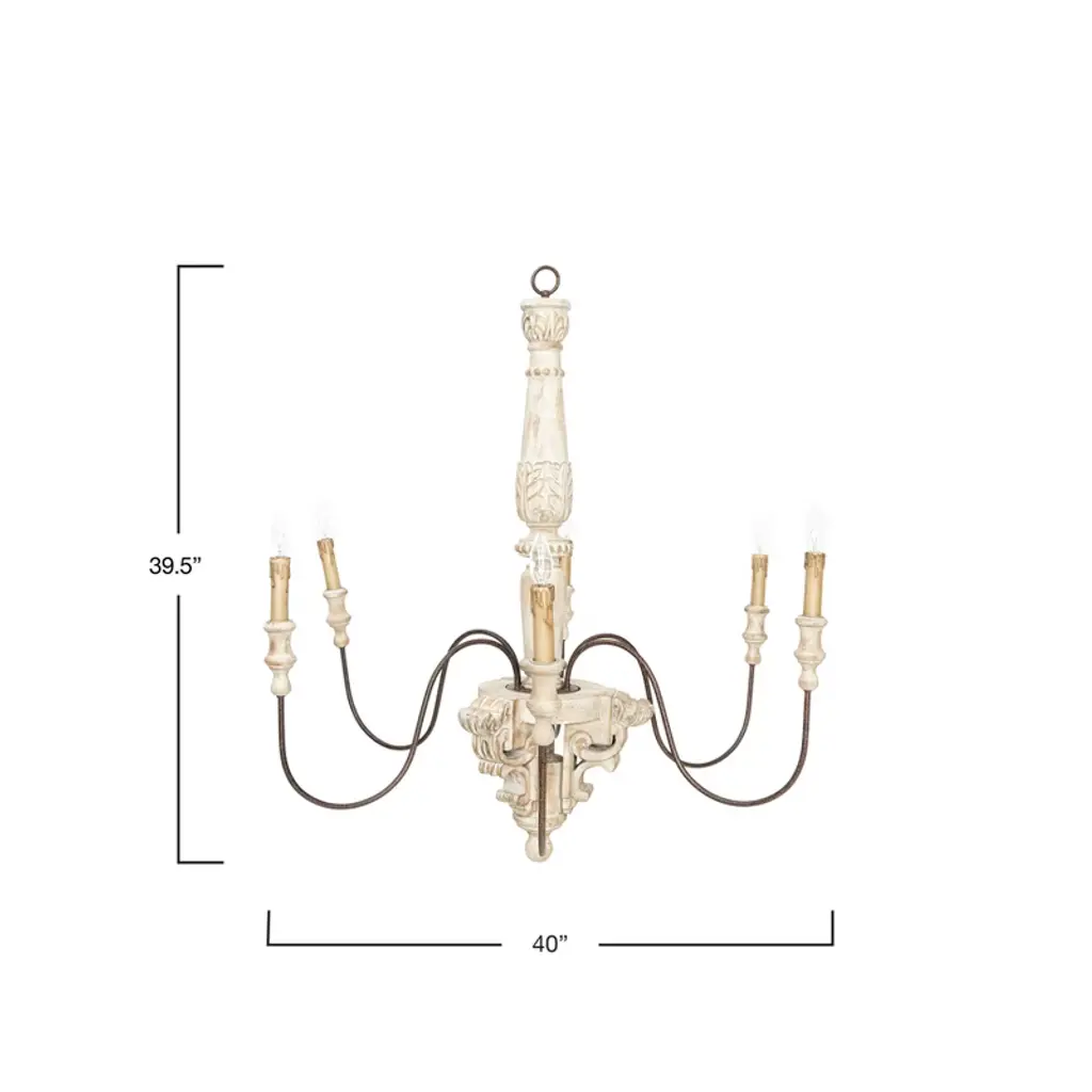 Storied Home Antique Wood And Metal Chandelier, Distressed Cream