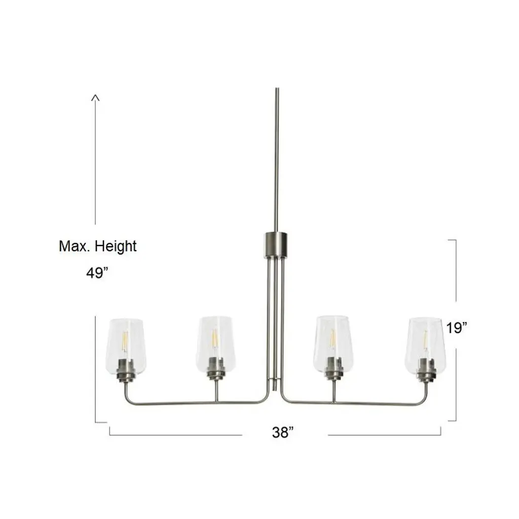 Storied Home Holden - Metal And Glass 4-light Linear Chandelier, Antique Nickel