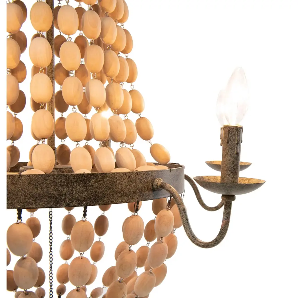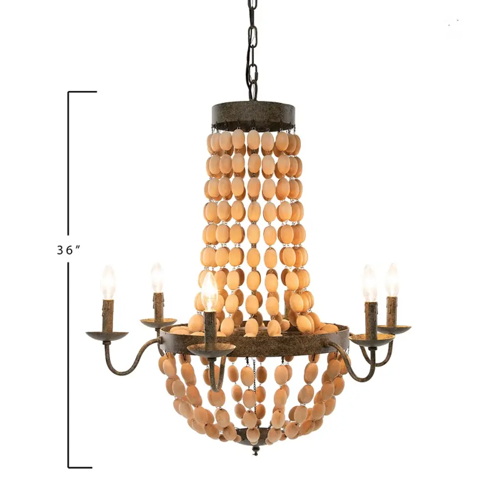 Add a touch of warmth to any gathering space with this stunning wood bead chandelier style ceiling light; This carefully crafted and versatile fixture showcases multiple sources of light tucked behind hand-draped beadwork; Hang as the focal point in a room of any style from global to rustic for the ultimate combination of style and ambience