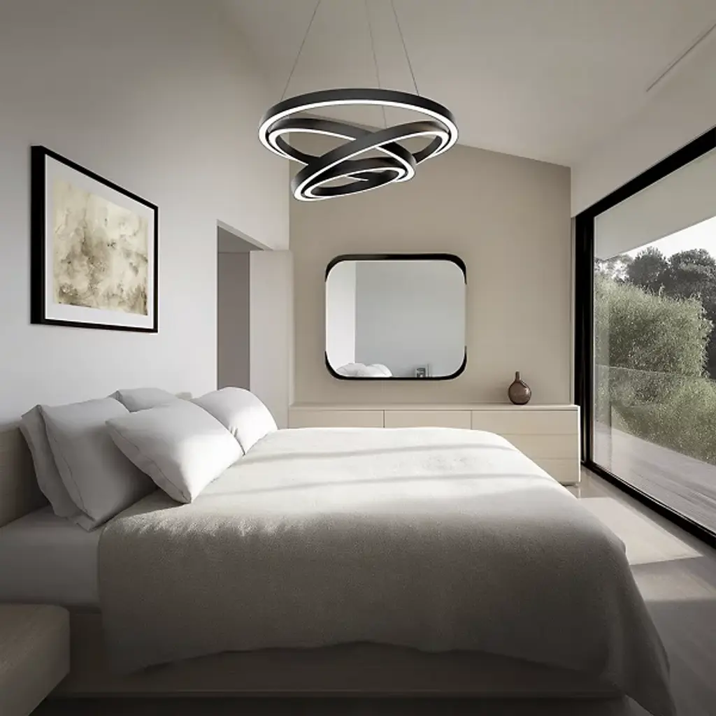 The Storm Chaser LED Chandelier from Modern Forms features spiraling, curved aluminum wings that surround a central axis, creating dynamic movement that evokes natural weather phenomena captured in metal. Each wing houses LED technology within silicone diffusers that follow the curved forms while providing both upward and downward illumination. The twisted configuration generates depth and shadow play as the wings overlap and intersect at different angles. Four selectable color temperatures allow lighting customization through canopy controls, while the kinetic appearance brings energy to interior spaces.