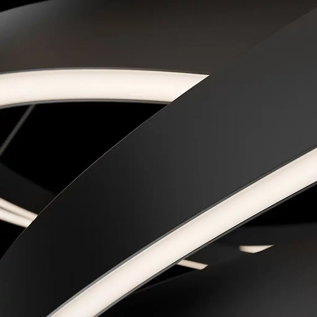 The Storm Chaser LED Chandelier from Modern Forms features spiraling, curved aluminum wings that surround a central axis, creating dynamic movement that evokes natural weather phenomena captured in metal. Each wing houses LED technology within silicone diffusers that follow the curved forms while providing both upward and downward illumination. The twisted configuration generates depth and shadow play as the wings overlap and intersect at different angles. Four selectable color temperatures allow lighting customization through canopy controls, while the kinetic appearance brings energy to interior spaces.