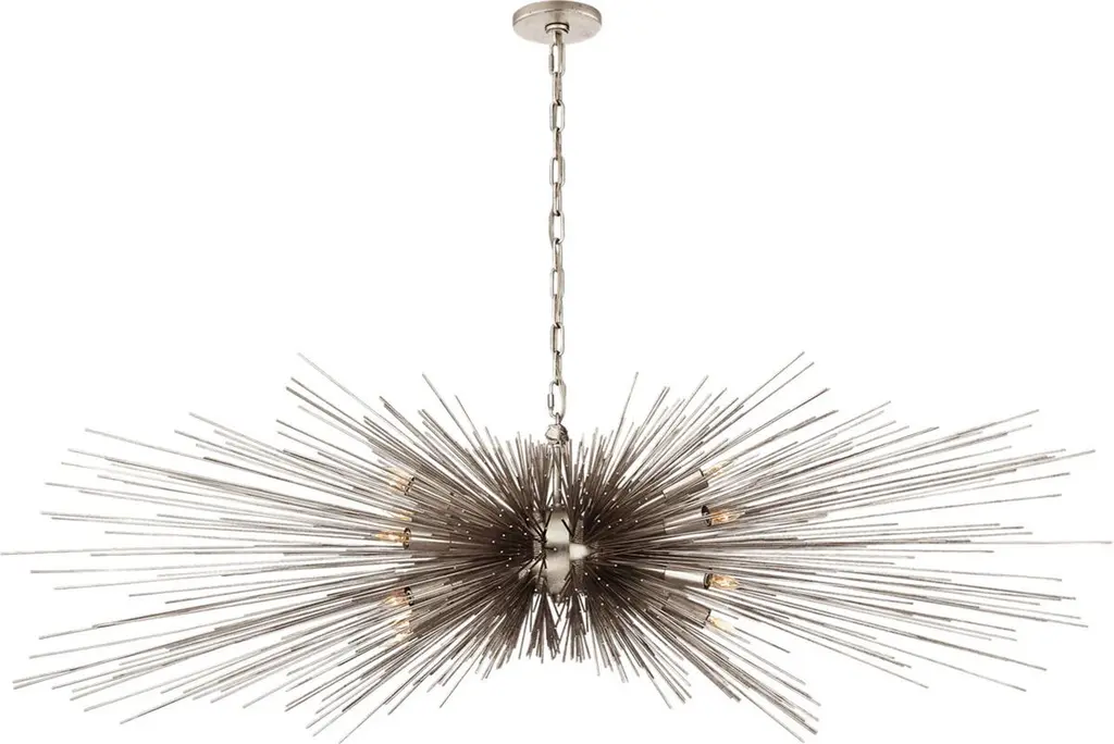 Paying homage to vibrant organic forms and sleek metal, the Strada series features delicate sculptures of radiating quills that cast a striated glow across ceilings and walls. With a variety of designs including flush mounts, chandeliers, and sconces, this collection creates delicate volume that adds a unique, dynamic touch to interior spaces.