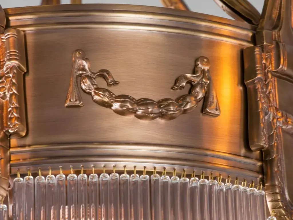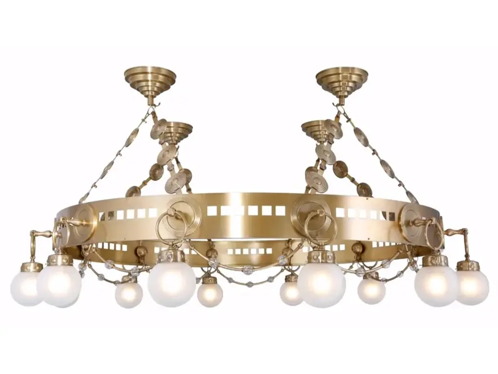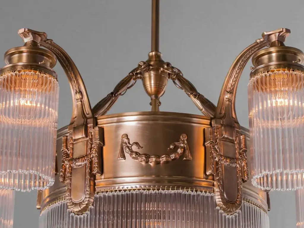 Strasbourg 5 is a brass chandelier available in different finishes.Finishes: Antique, Shiny brass, Matt brass, Shiny nickel, Matt nickelCapacity: 6x75 W E27The Patinas lamps are all handmade in Hungary. They are made of solid brass,available in different finishes such as antique,shiny brass,nickel. The lights can be customized and orderd with other shades as on the photo. Sockets are made of porcelain,this way you can use traditional, energy saving light bulbs and LED.