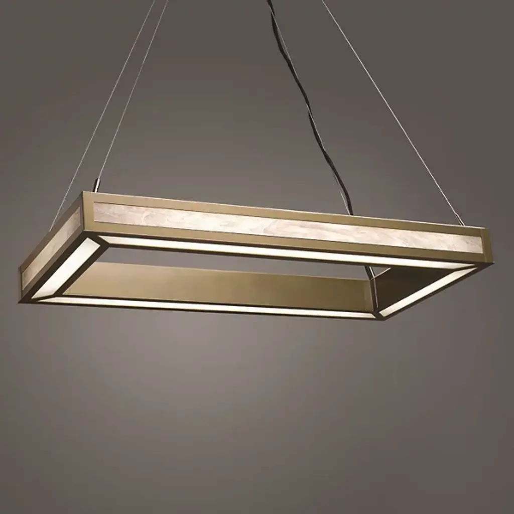 Frame your spaces with the Strata LED Rectangular Chandelier by Ultralights. This defined and refined chandelier has a simple, openly styled, rectangular silhouette that holds acrylic diffusers around its outer edge and along the bottom of its form. Each diffuser helps evenly disperse a layer of energy-efficient light and is neatly held within the metal body around it for a crisp and handsome look. Elevate the appearance of rooms with this chandelier as it effortlessly floats within a space.