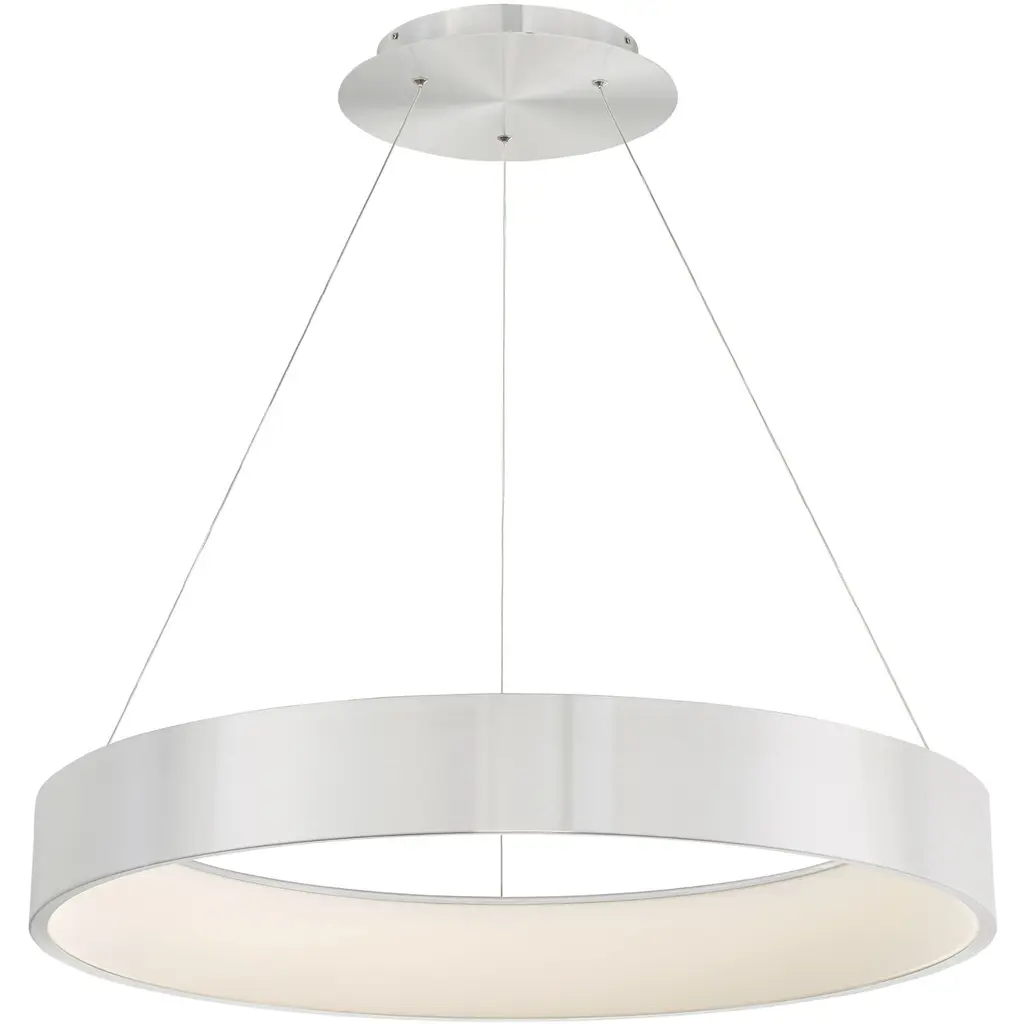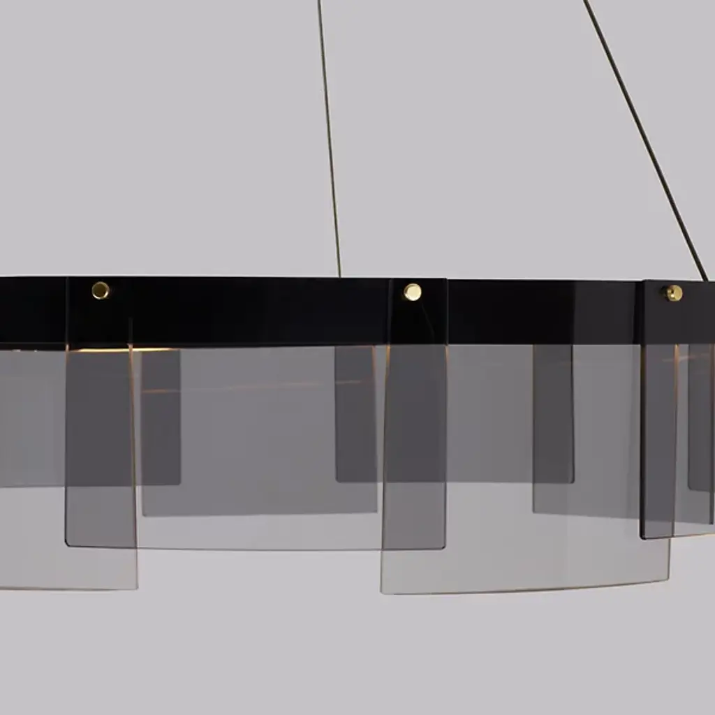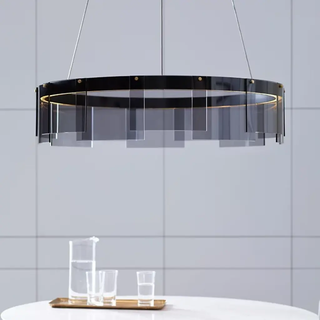 The Visual Comfort Modern, formerly known as Tech Lighting, Stratos LED Chandelier presents a modern interpretation of the traditional chandelier. Gently curved panels of glass overlap and are brought to life with a hidden LED module, lighting the space with a contemporary spin on the tried and true. By combining cutting edge technology with the iconic round chandelier shape, the result is a modern aesthetic that still has classic appeal.