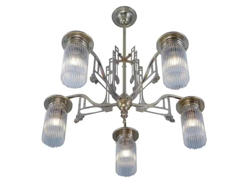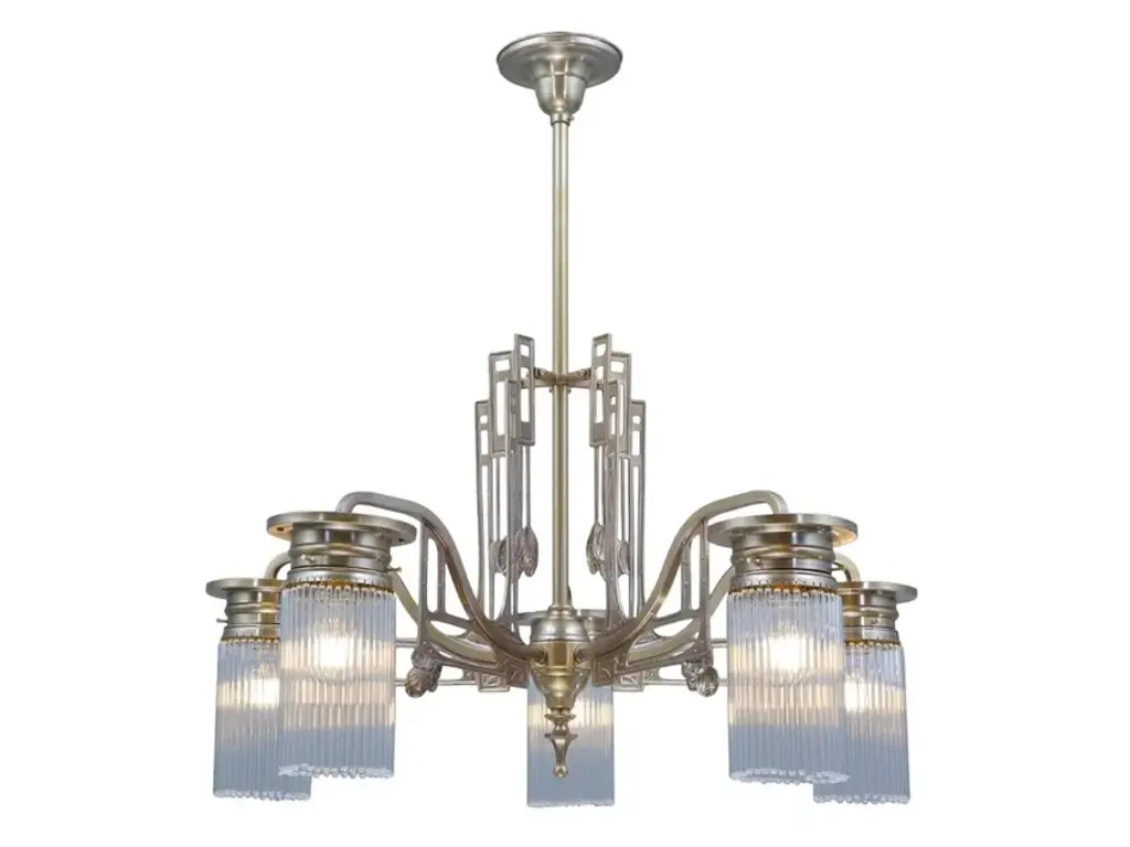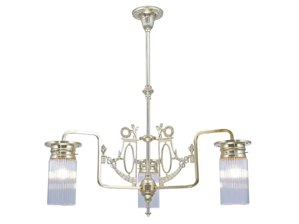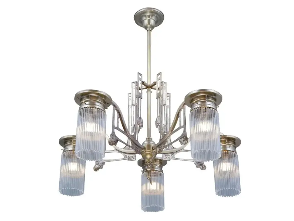 Stuttgart 5 is a 5 armed chandelier made of brass available in different finishes.Finishes: Antique, Shiny brass, Matt brass, Shiny nickel, Matt nickelCapacity : 5x75 W E27- Stuttgart 3 armed chandelierCapacity: 3 X 75 W E27- Stuttgart 5 armed chandelierCapacity: 5 X 75 W E27These lamps feature a geometric yet gracile decor and glass tubes. They seem particularly weightless due to the fragile decor, which makes them a splendid choice for a feminine surrounding.