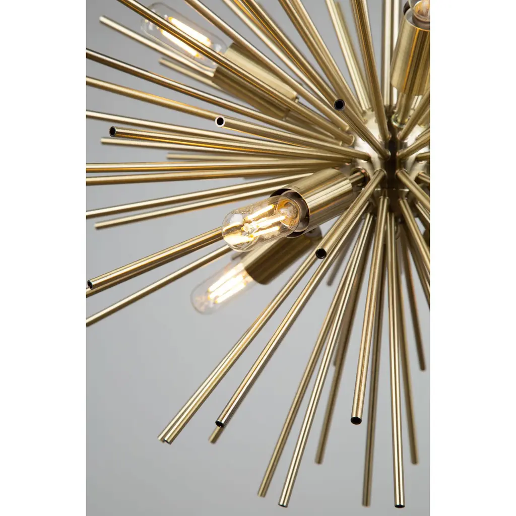 The "Sunburst" collection is a unique and undeniably beautiful focal point for any space. Each fixture features a dynamic cluster of thin, hollow rods that radiate outward, creating a stunning visual effect reminiscent of a sunburst. The intricate design captures and reflects light beautifully, adding a touch of glamour and sophistication to the room. Crafted with meticulous attention to detail, the "Sunburst" collection combines artistry with functionality. Its bold and striking appearance makes it an eye-catching centerpiece in both modern and traditional interiors.