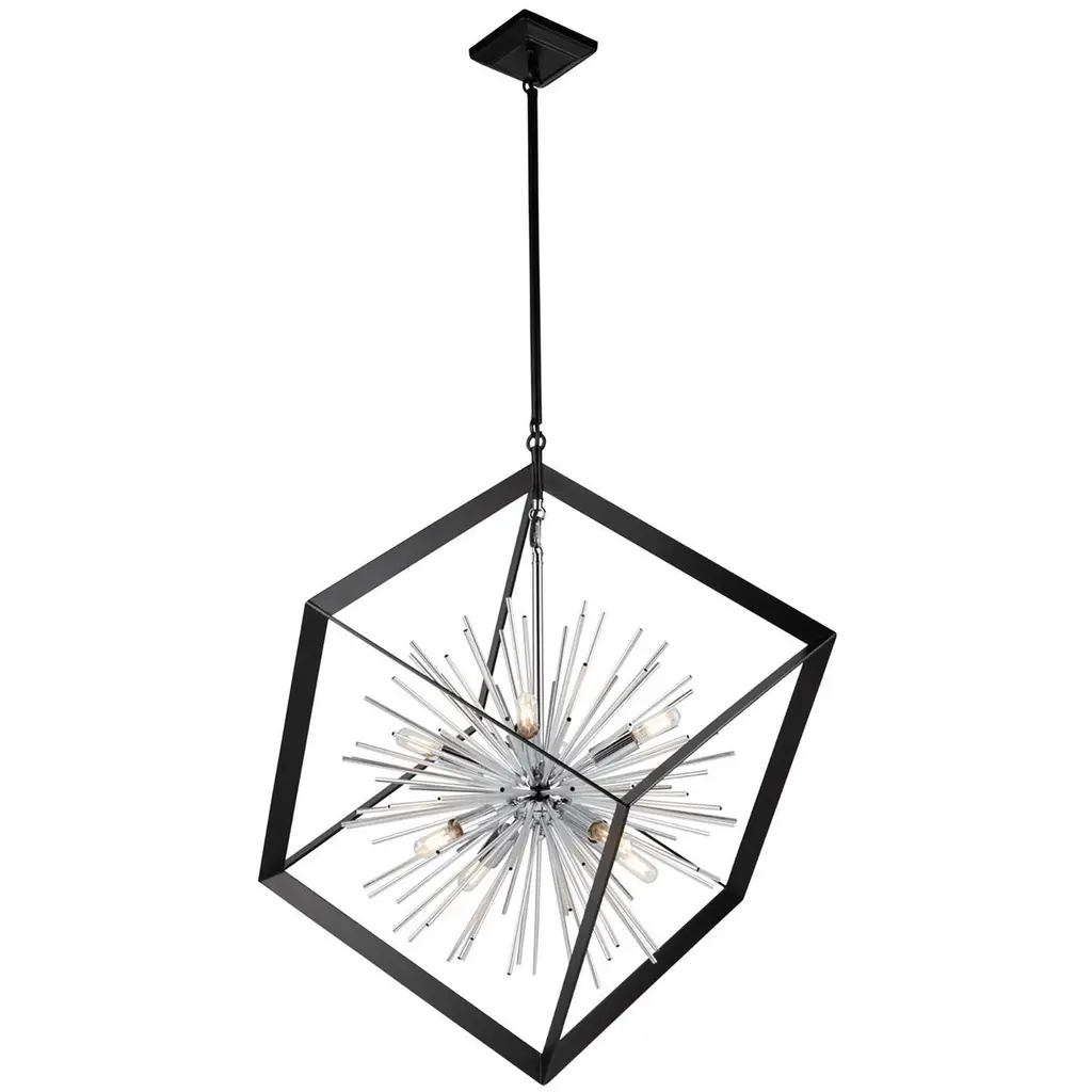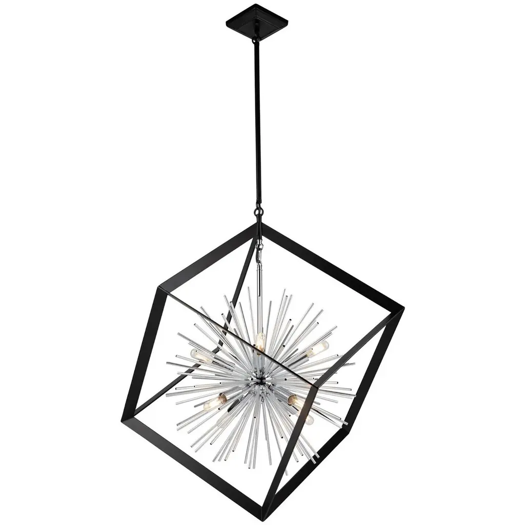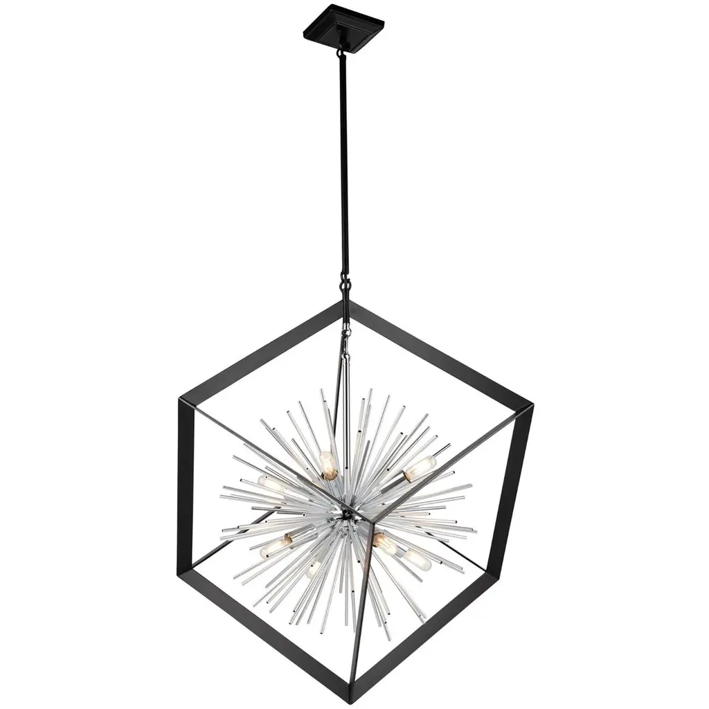 Sunburst Led 31.5 Inch Matte Black And Chrome Chandelier Ceiling Light