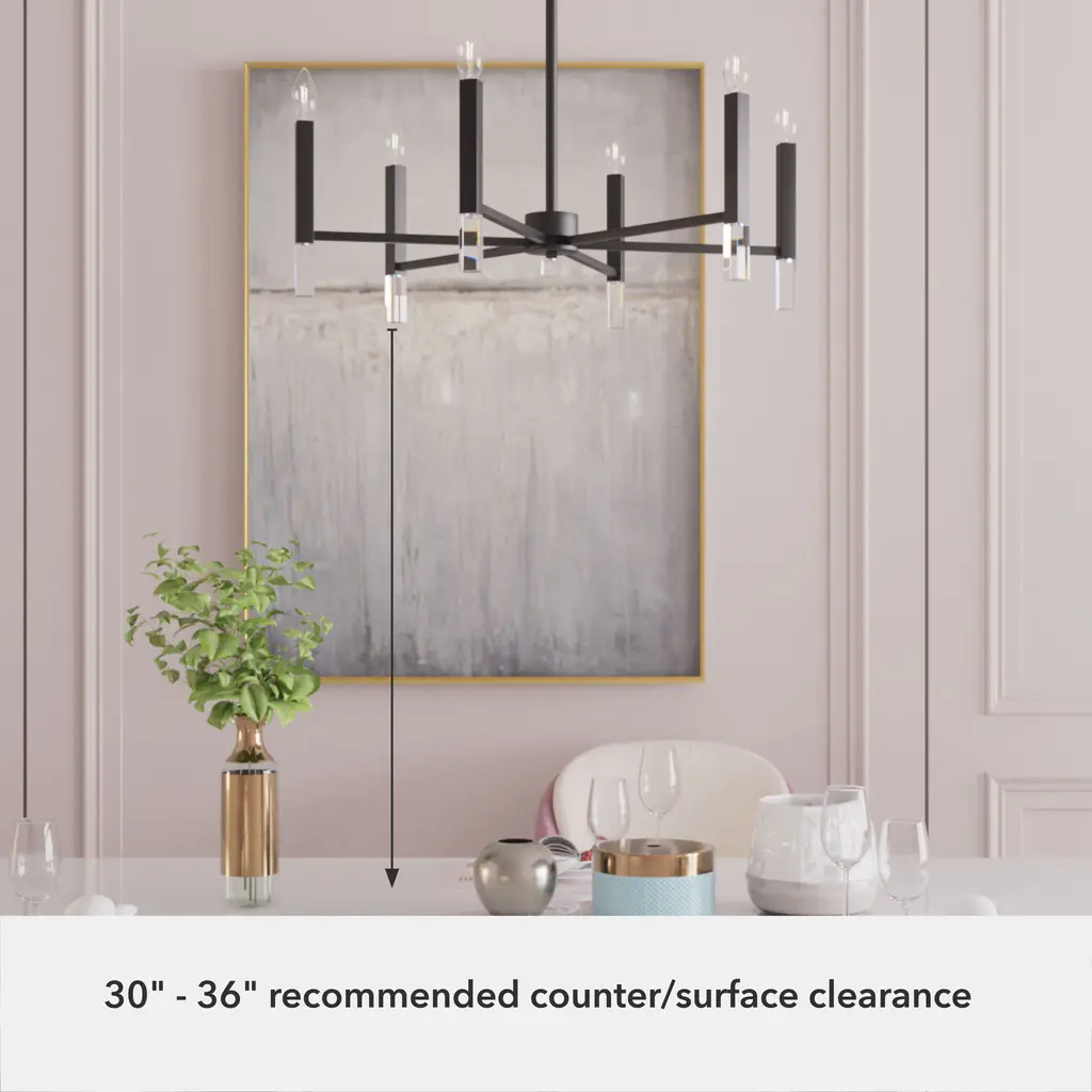 Your guests will be drawn to the beauty of the Sunjai chandelier. The perfect modern accent to your homes living or dining room, your guests will be entertained by your style. Pairing modern simplicity with elegant design and chic sparkling accents, the Sunjai chandelier is a wonderful way to light up your living space without overwhelming your homes existing decor. Upgrade your aesthetic with the Sunjai.
