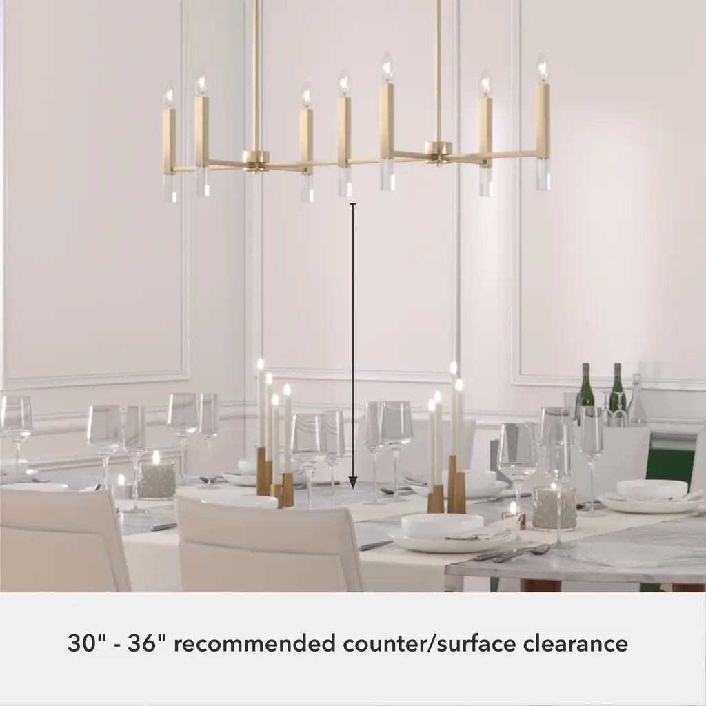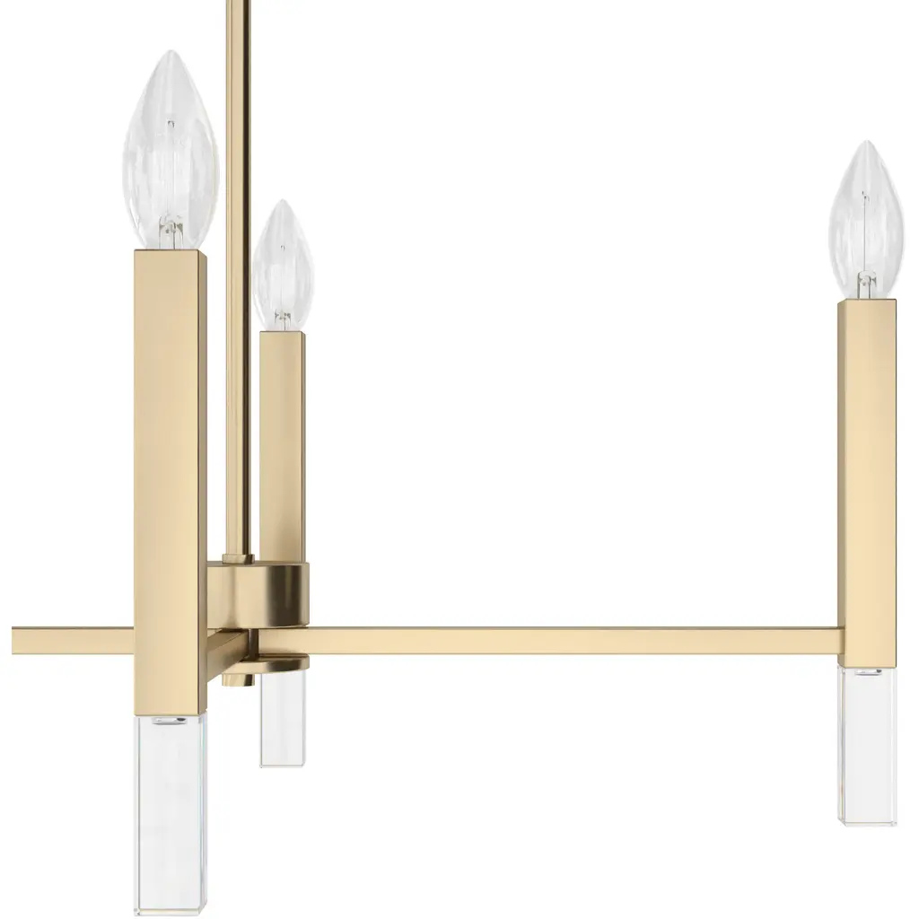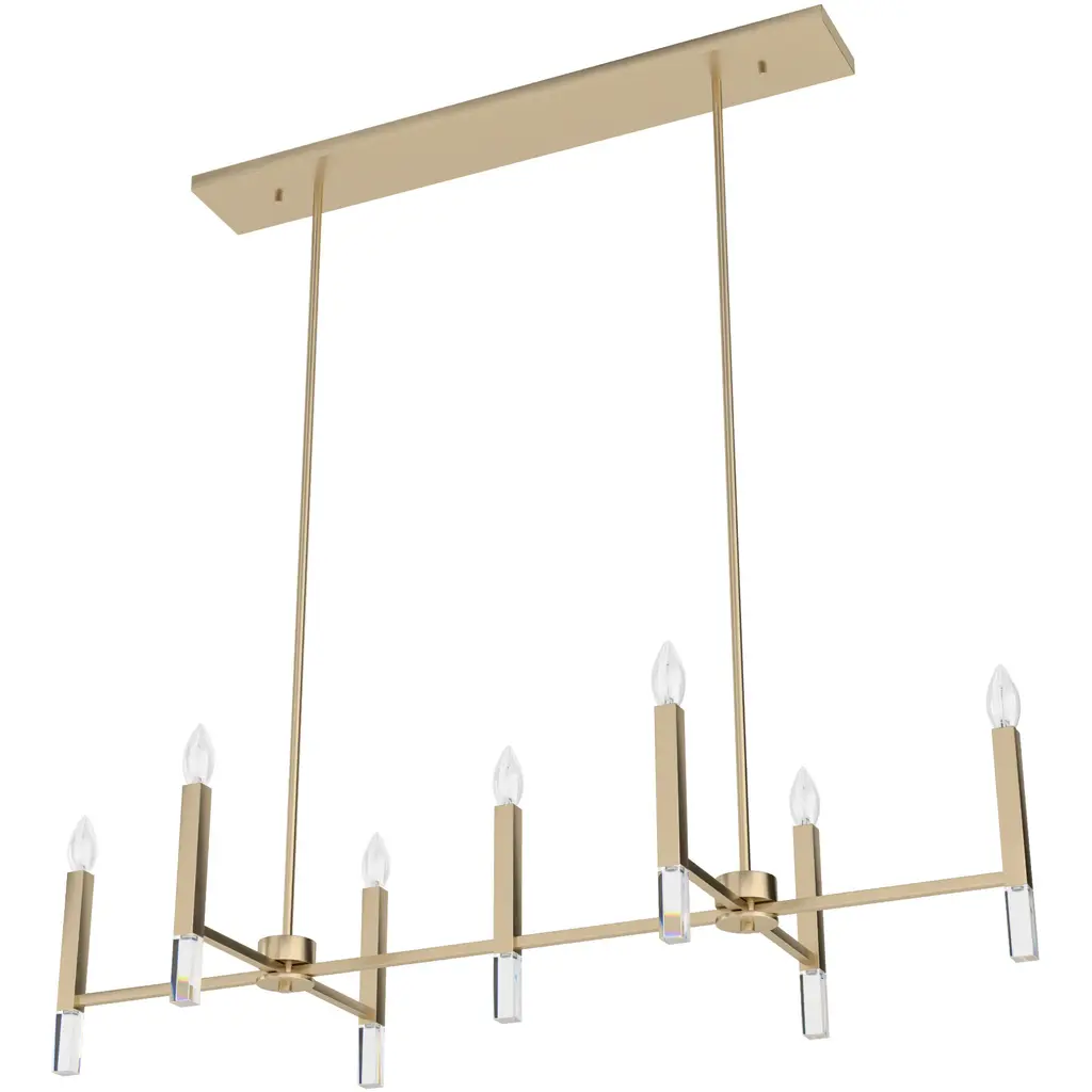 Gathering under the glow of the Sunjai linear chandelier will turn your dinner into a party. Laugh and dine under this beautiful modern fixture perfect for kitchens and dining rooms. This chandelier is modern and meets glamourous with geometric adornments set into the clean-lined metal candles to add a touch of sparkle that will compliment any decor. Mix and match with other fixtures from this collection or from our ceiling fan designs.