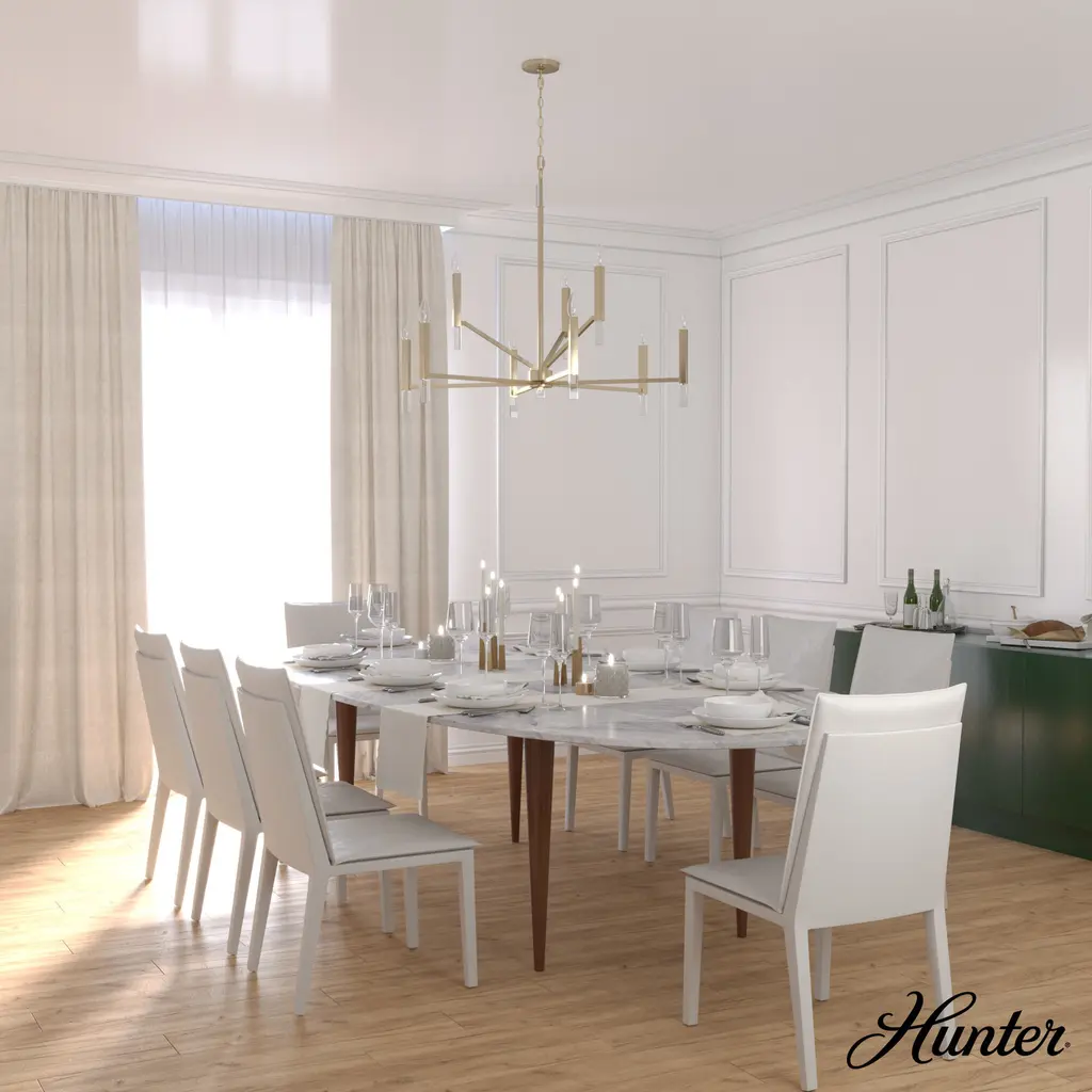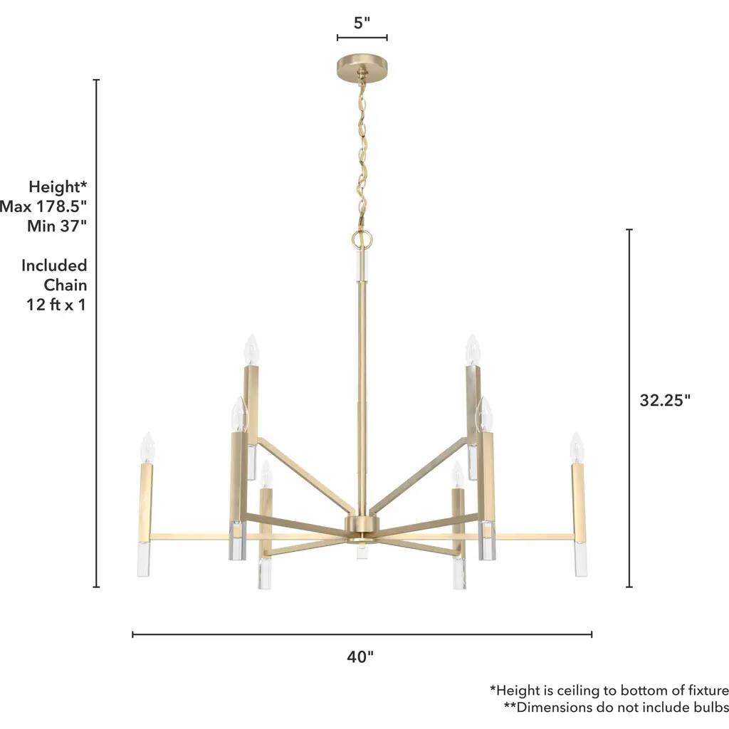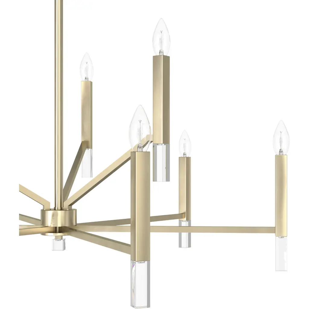 Uplift your home’s lighting aesthetic with the Sunjai 2 tier chandelier, featuring nine individual lights that evoke the classic glow of a candelabra, with a modern edge. The Sunjai’s casual geometry is offset by elegant shimmering adornments at the base of each light and the fixture’s overarching clean, modern design, adding a touch of glam to. Brighten up gatherings with the Sunjai 2 tier chandelier.