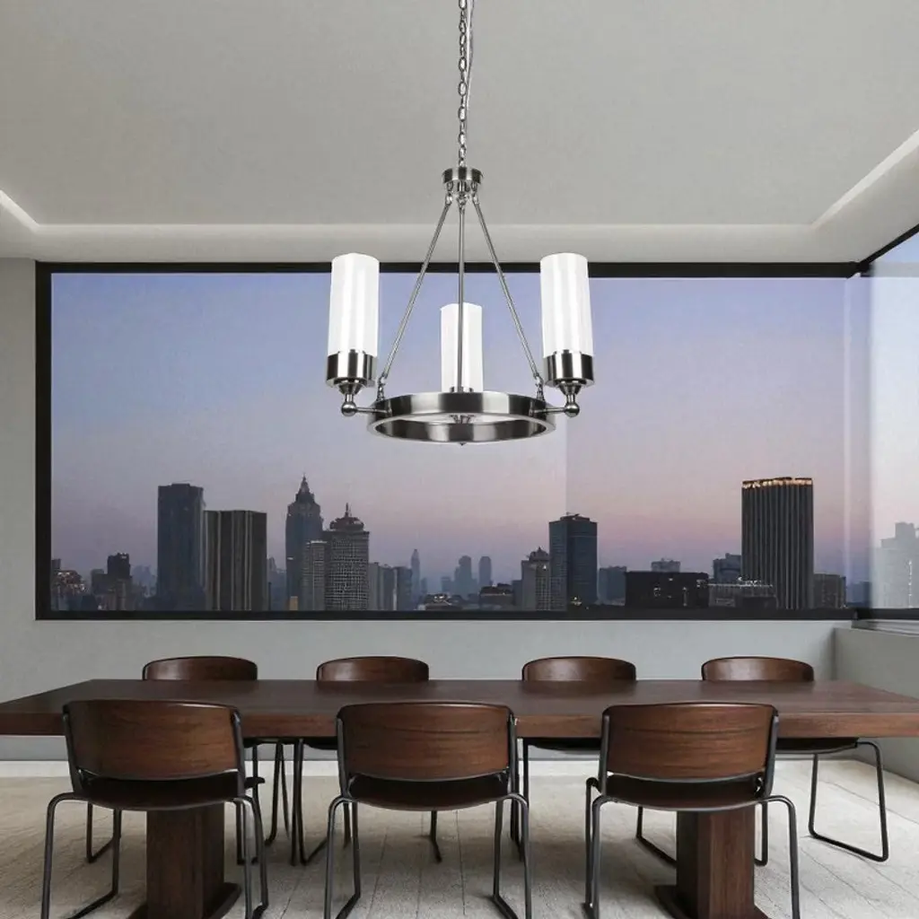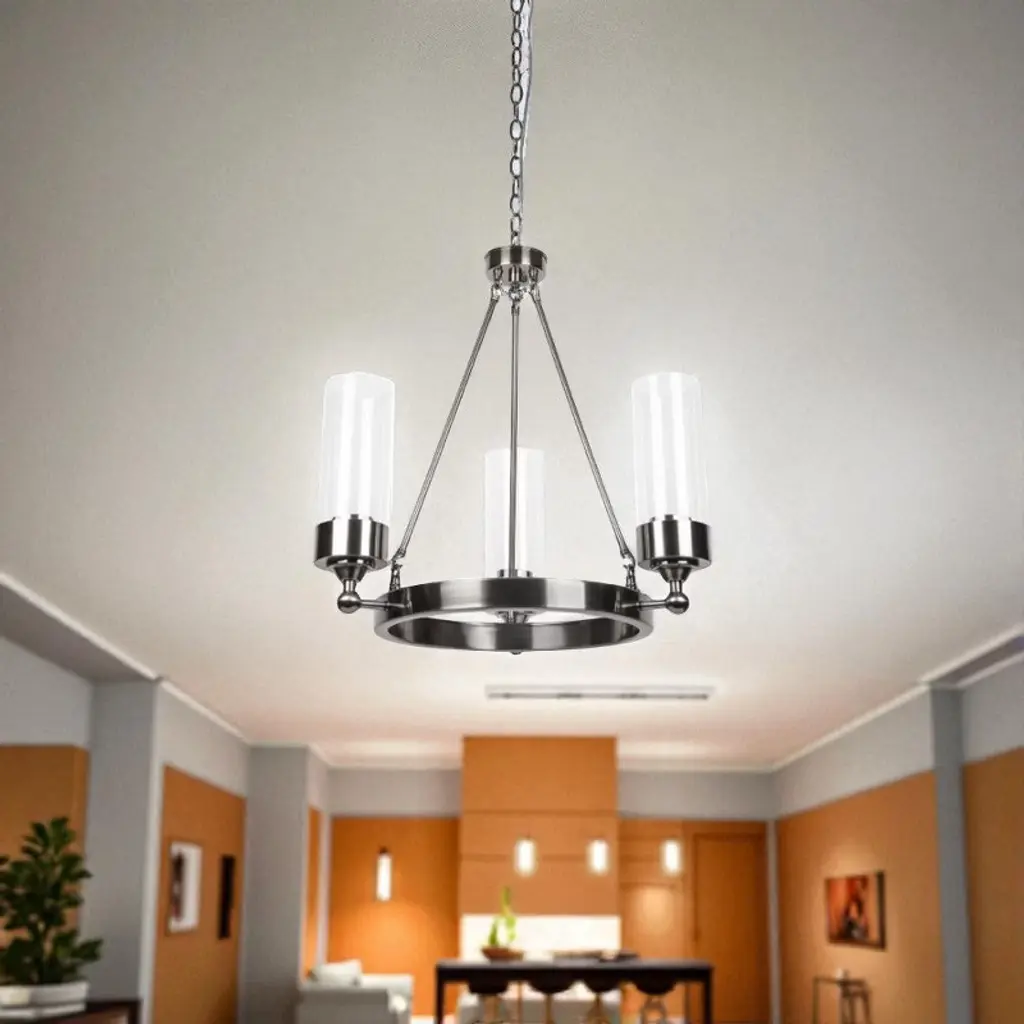 Sunset Lighting Esquire 3-Light Chandelier, Antique Gunmetal with Clear Glass Elevate dining rooms and living spaces with the Esquire chandelier’s refined Antique Gunmetal finish and clear glass shades. This transitional 3-light fixture provides bright, even illumination and a sophisticated look that complements both modern and classic décor. Key Features: • Elegant transitional design in Antique Gunmetal • Clear glass shades for bright, crisp illumination • Three-light chandelier; uses 100W incandescent bulbs • Ceiling-mount, corded-electric installation • Ideal for dining rooms, living rooms, and bedrooms Specifications: • Brand: Sunset Lighting (Manufacturer: Luminance) • Model/Part Number: F17113-57 (Esquire) • Color/Finish: Antique Gunmetal (Gunmetal Finish) • Fixture Type: Chandelier • Shade Material: Clear Glass • Light Source Type: Incandescent • Number of Bulbs: 3 (100W each, not included) • Power Source: Corded Electric • Mounting Type: Ceiling Mount • Dimensions: 22" L × 23.63" W × 23.63" H • Item Weight: 14.97 lb • Included Components: Light fixture • Room Types: Dining Room, Living Room, Bedroom
