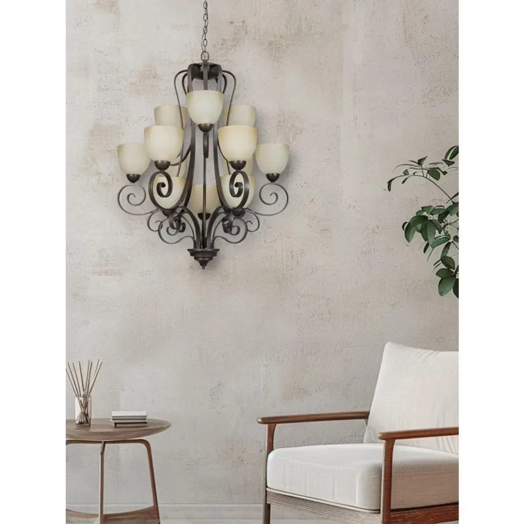 Sunset Lighting 3-tier Chandelier Buttercup Glass, Tique Finish 12-lt 3-tier 60w Mb Provano Chandelier