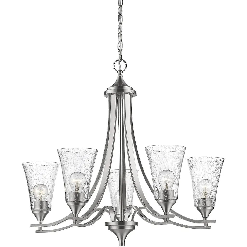 Sunset Lighting Riella 5-light Chandelier, Clear Seeded Glass, Bright Satin Nickel