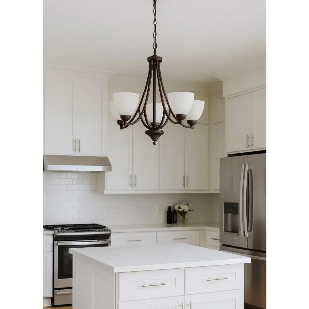 Sunset Preston 5-light Chandelier, Opal Etched Glass, Provincial Bronze