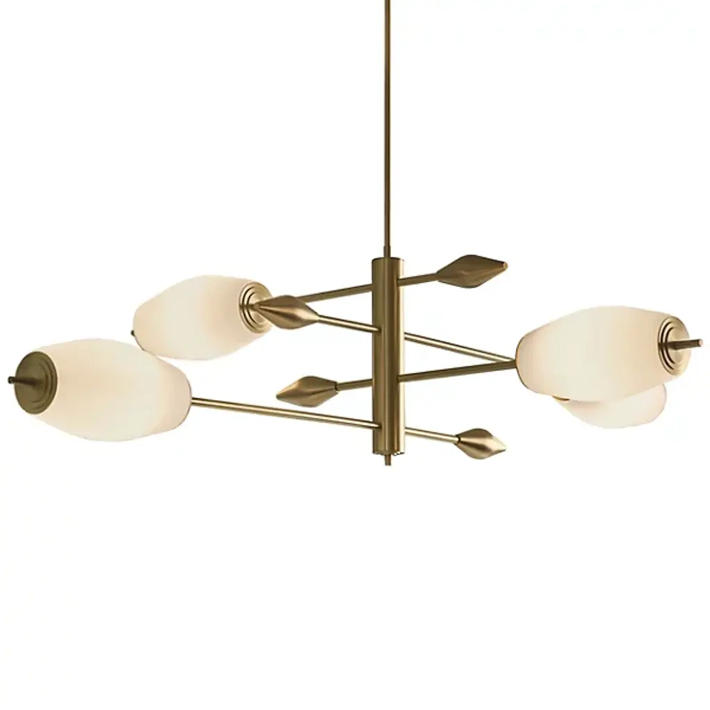 The Supernova 4-Tier LED Chandelier from J. Adams & Co. takes modernity to new heights! From a downrod at the ceiling, 4 lights attach in a descending pattern. Brass is the elegant metal used as the primary material for this evocative fixture. The intersection of vertical and horizontal rods creates a weathervane aesthetic. The vase-like shades are arranged in a collected way, forming a wide perimeter wherefrom light can emanate throughout your modern living space.