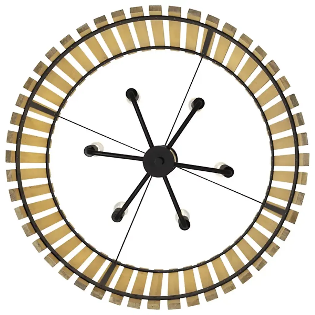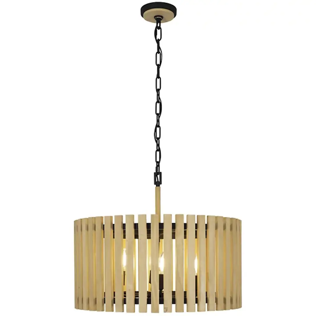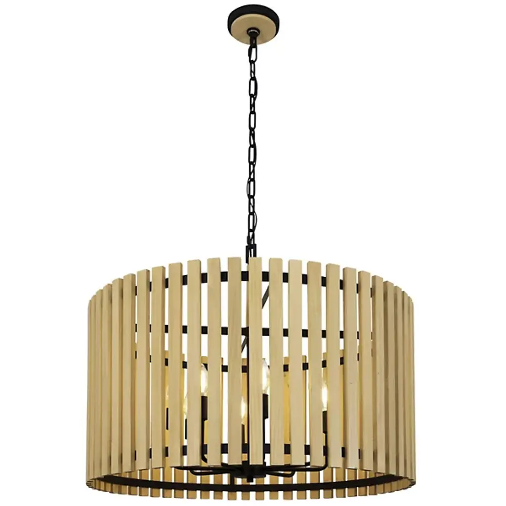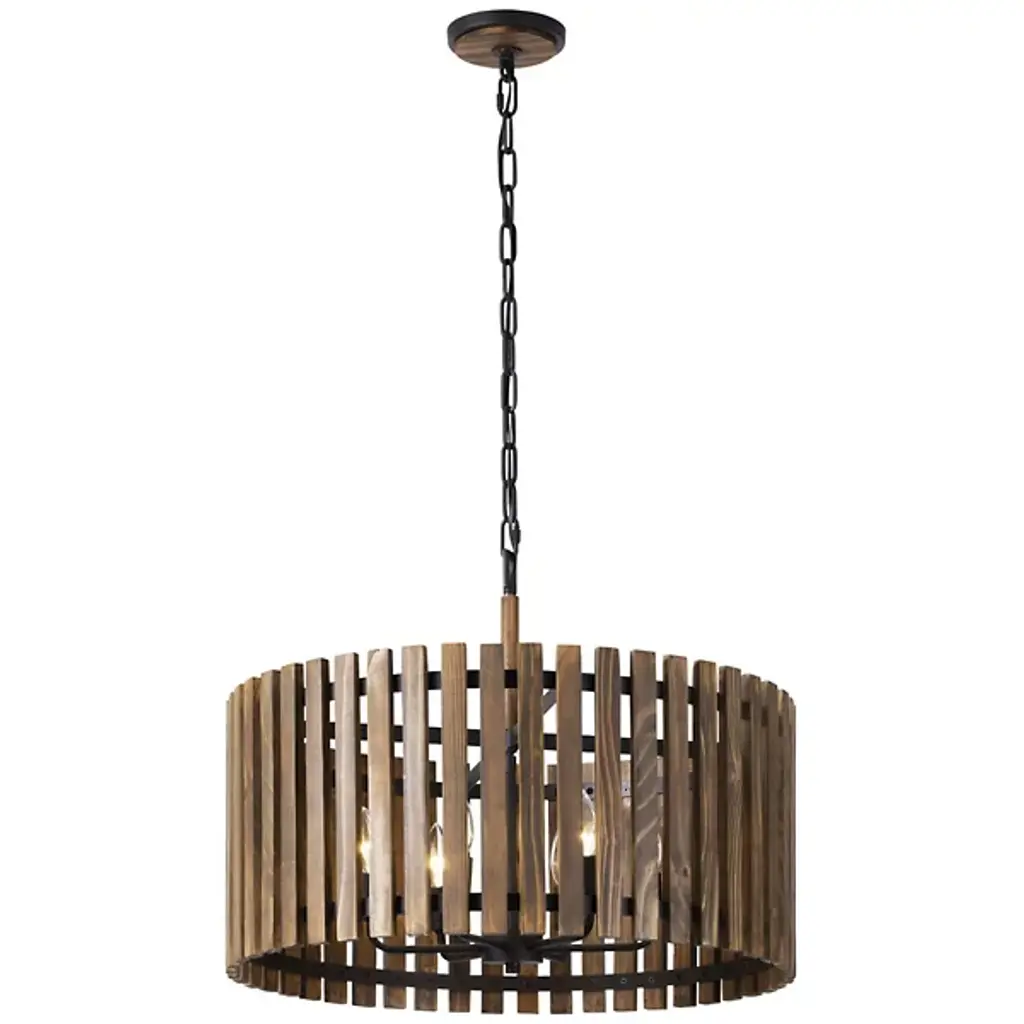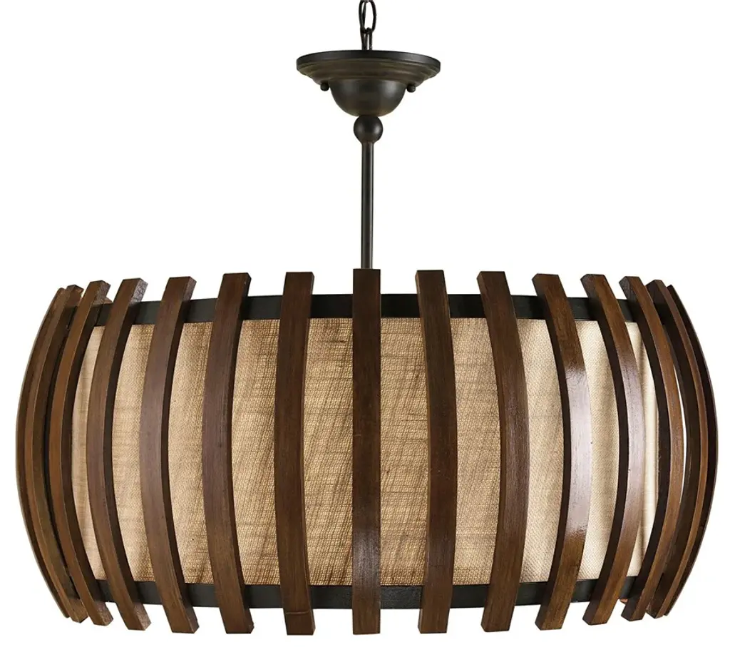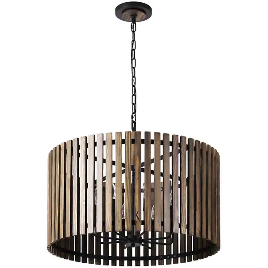 The Suratto Chandelier from Varaluz is designed by Ron Henderson. It blends Japanese minimalism with rustic modern aesthetics. The chandelier boasts a slatted appearance, creating a play of light that adds depth and intrigue to your space. The drum-shaped design, crafted from recycled steel, exudes elegance and simplicity. Illuminated by LEDs, the fixture provides warm and inviting light. The shade is made from upcycled pallet wood, adding an eco-friendly touch. With dimmable capabilities compatible with an ELV dimmer, you can readily adjust the chandelier’s brightness level.
