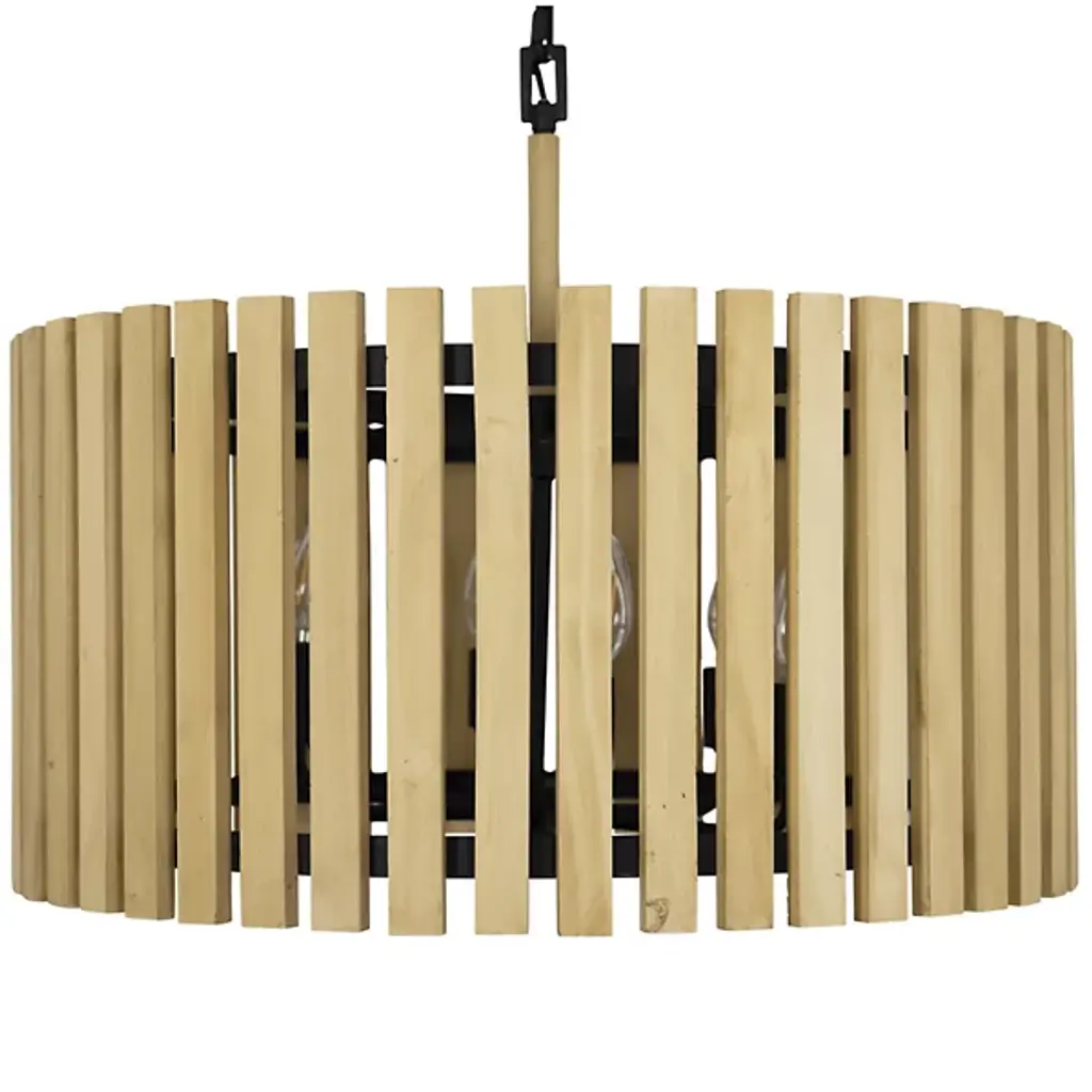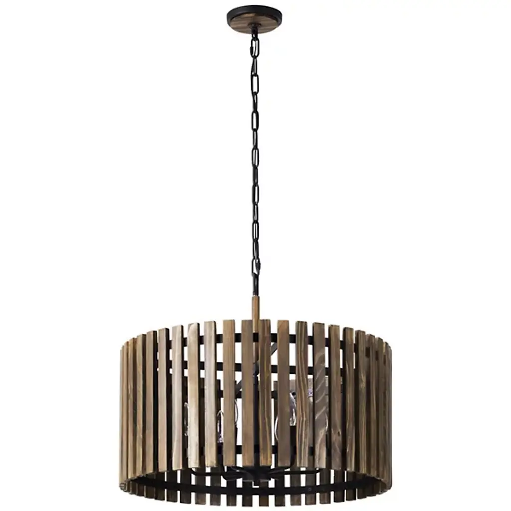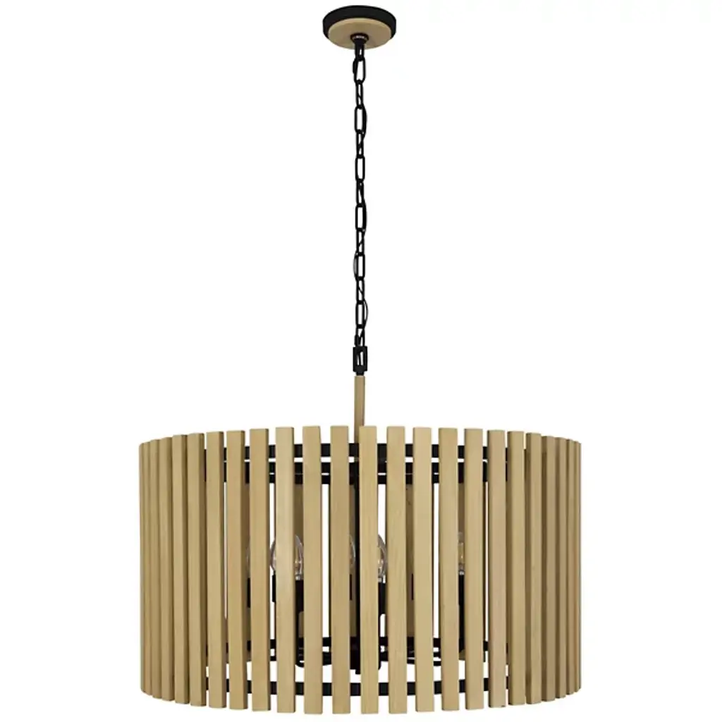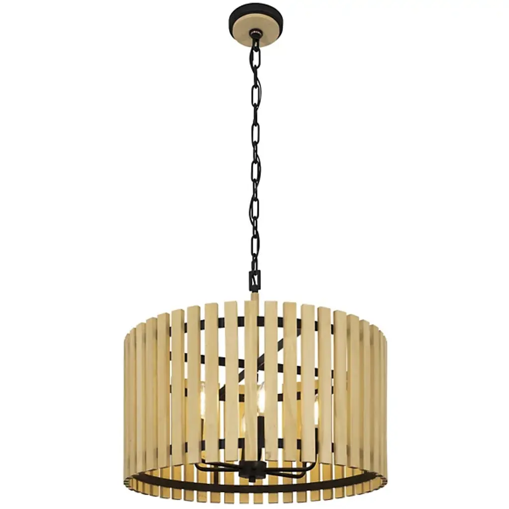 The Suratto Chandelier from Varaluz is designed by Ron Henderson. It blends Japanese minimalism with rustic modern aesthetics. The chandelier boasts a slatted appearance, creating a play of light that adds depth and intrigue to your space. The drum-shaped design, crafted from recycled steel, exudes elegance and simplicity. Illuminated by LEDs, the fixture provides warm and inviting light. The shade is made from upcycled pallet wood, adding an eco-friendly touch. With dimmable capabilities compatible with an ELV dimmer, you can readily adjust the chandelier’s brightness level.