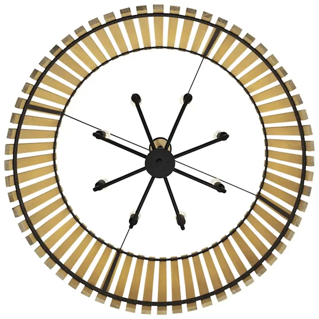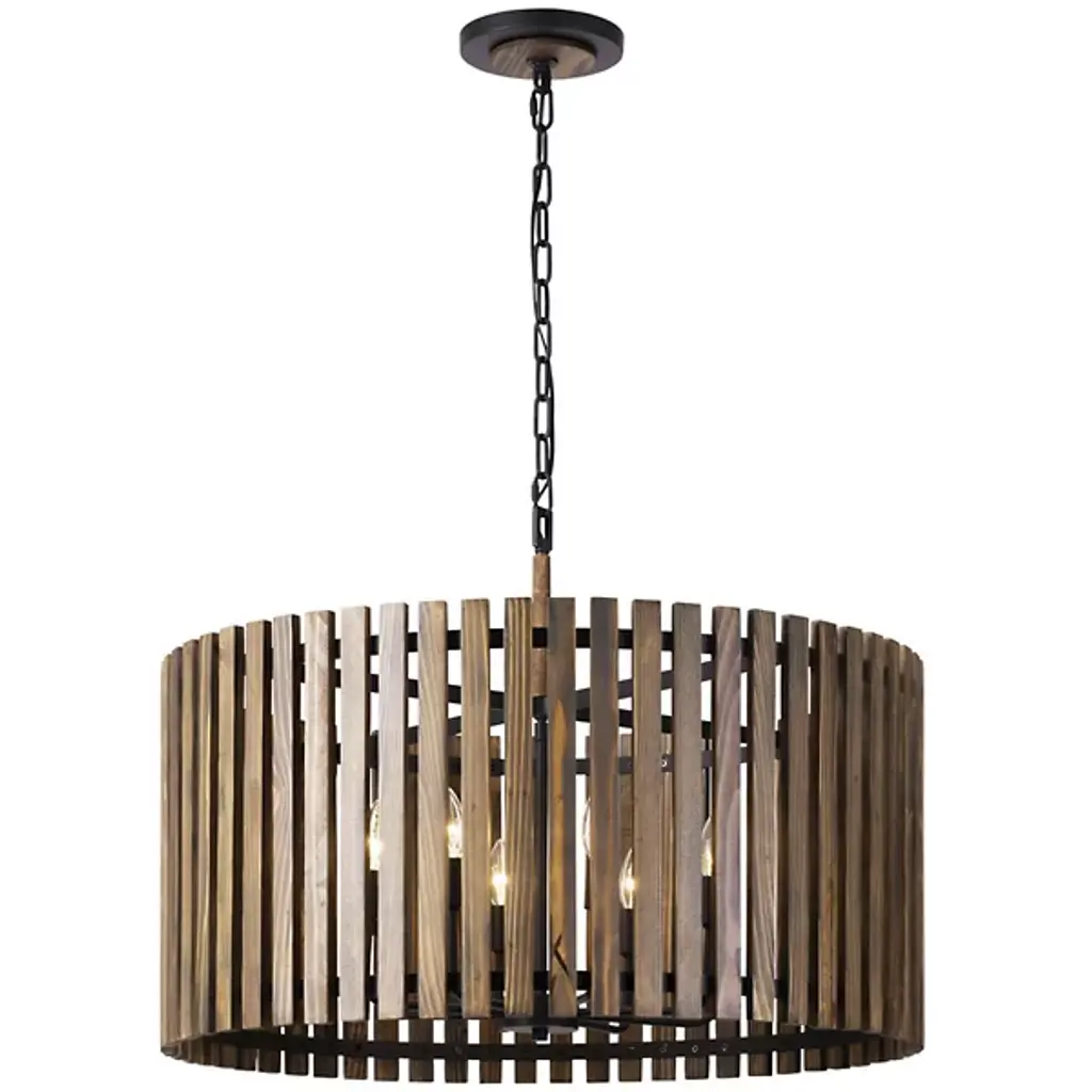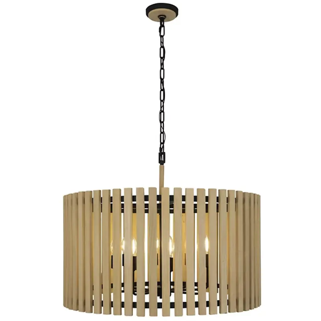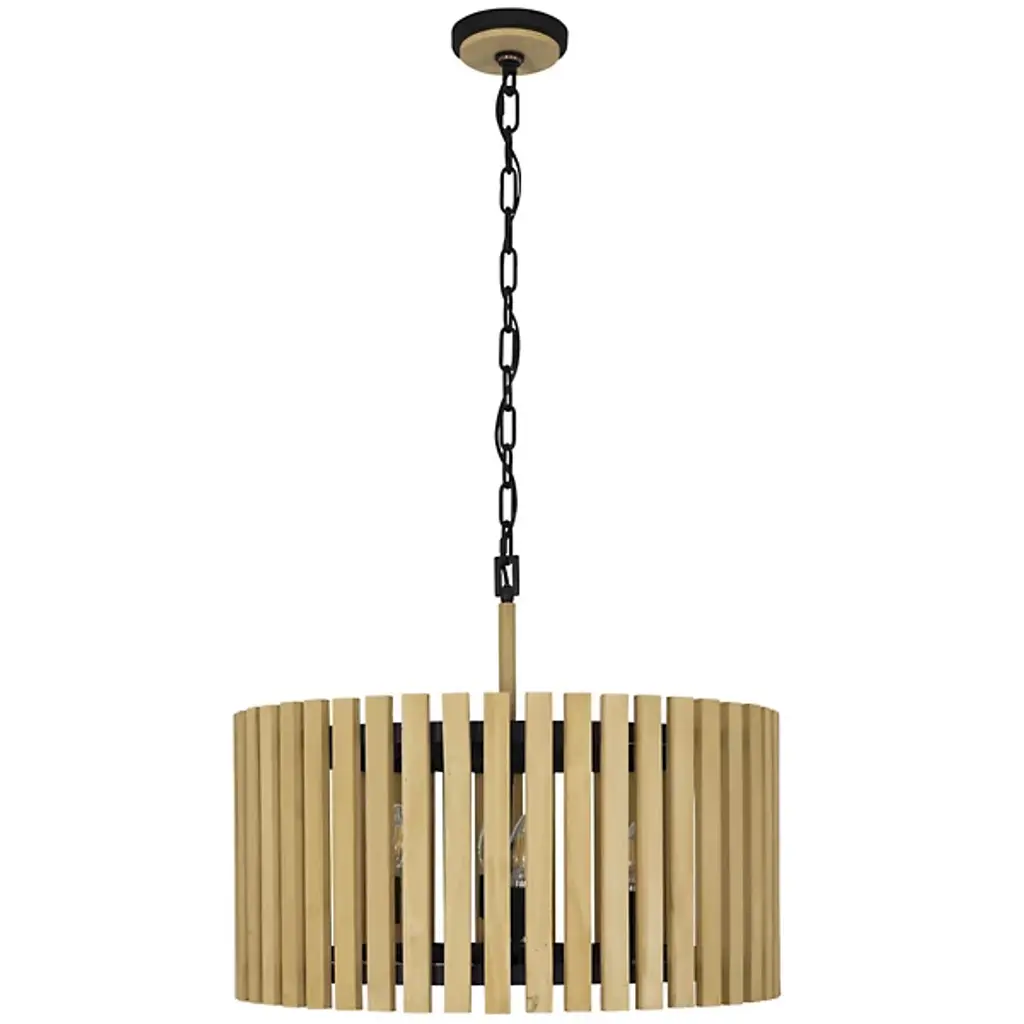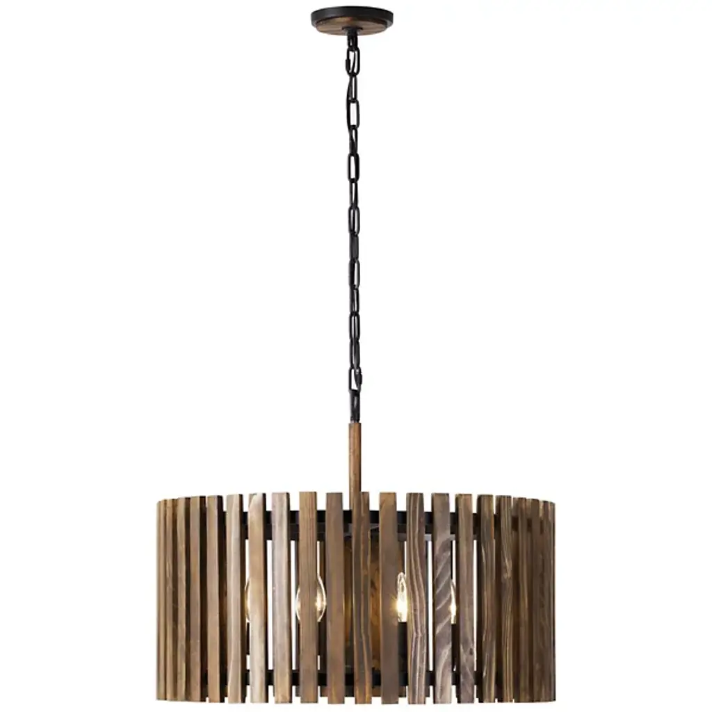 The Suratto Chandelier from Varaluz is designed by Ron Henderson. It blends Japanese minimalism with rustic modern aesthetics. The chandelier boasts a slatted appearance, creating a play of light that adds depth and intrigue to your space. The drum-shaped design, crafted from recycled steel, exudes elegance and simplicity. Illuminated by LEDs, the fixture provides warm and inviting light. The shade is made from upcycled pallet wood, adding an eco-friendly touch. With dimmable capabilities compatible with an ELV dimmer, you can readily adjust the chandelier’s brightness level.
