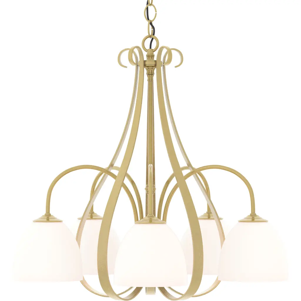 We challenge you to keep your eyes fixed on just one section of this fixture. The hand-shaped steel ribbons and tubes create the visual illusion of movement. Let your eyes follow graceful curves that flow to and from the bell-shaped glass of the down-lights.