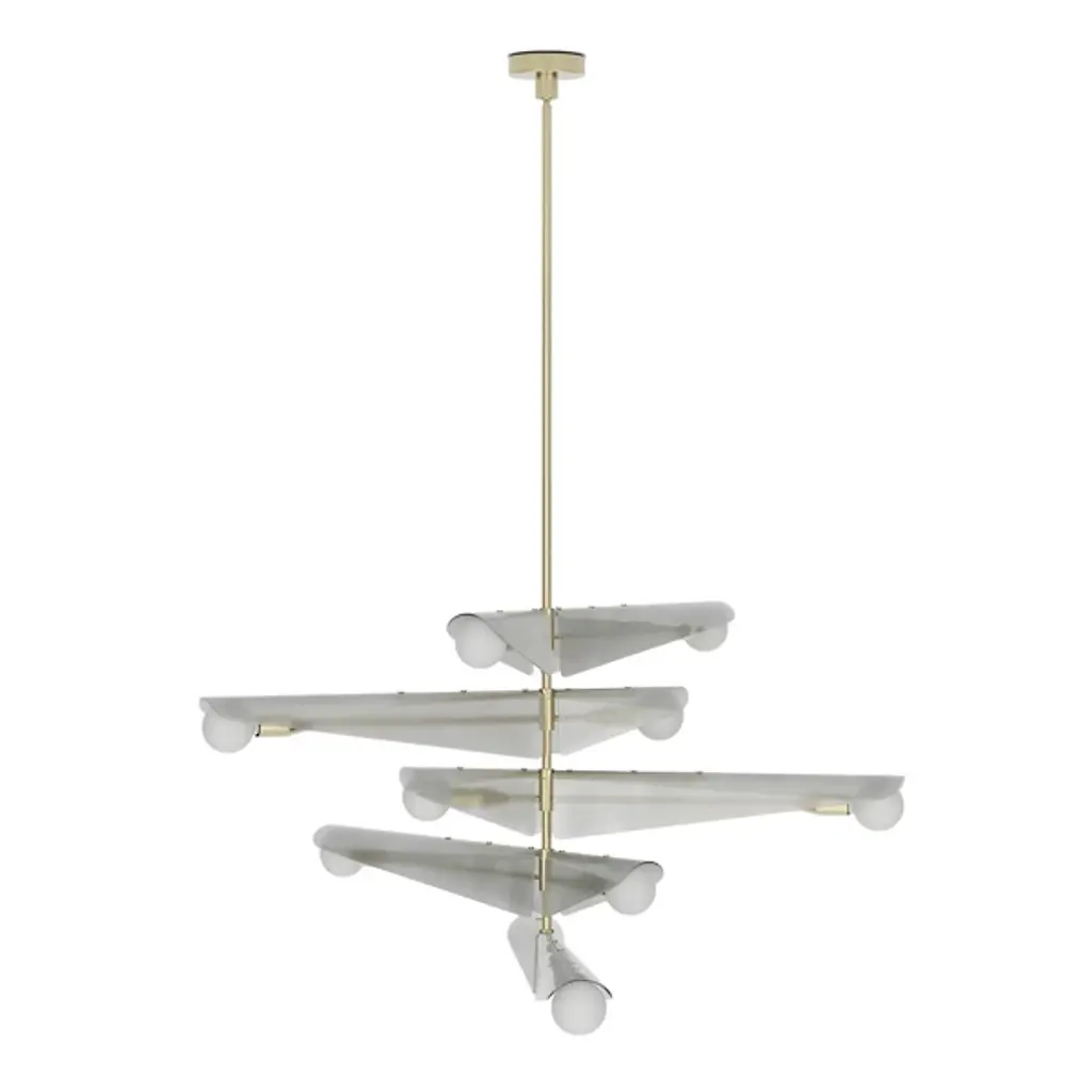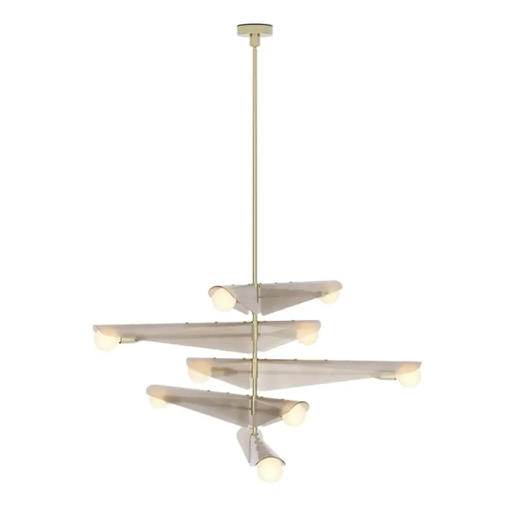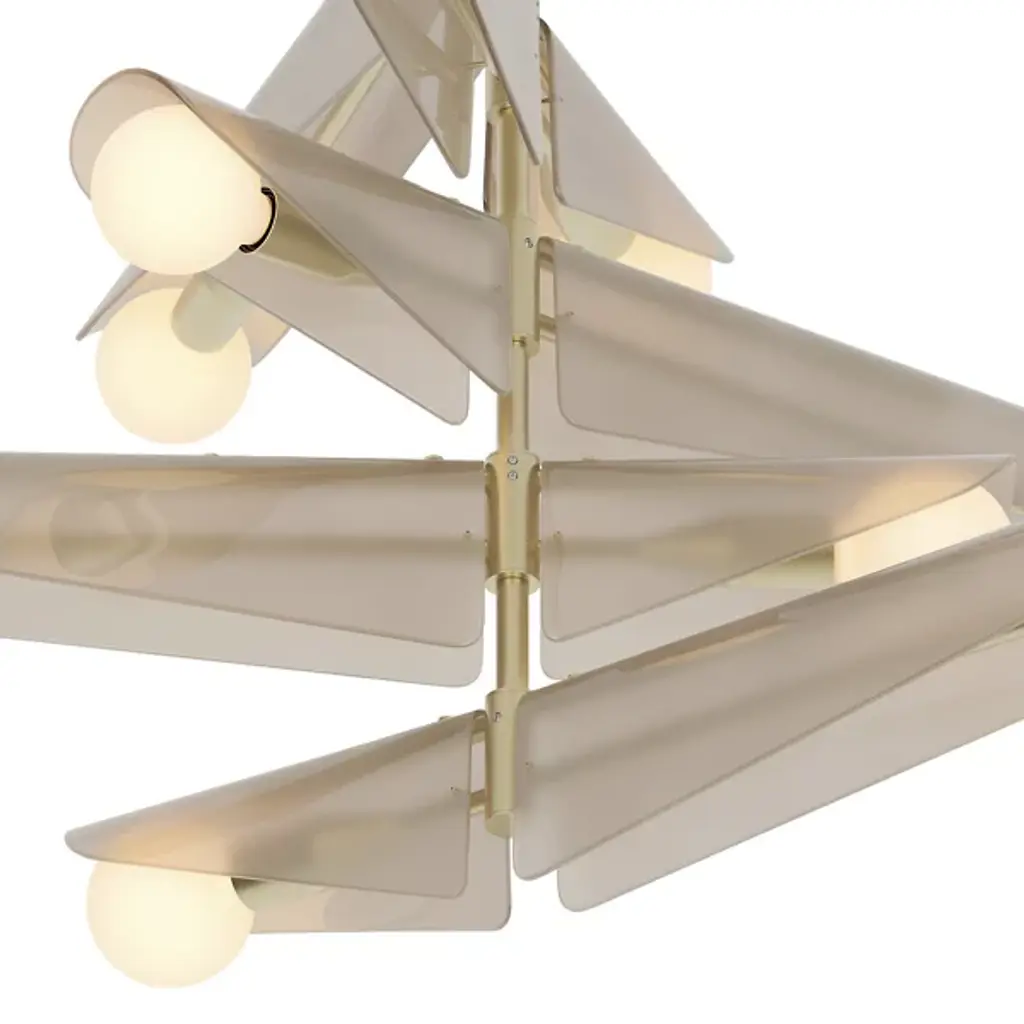 The Sycamore Chandelier from Tala draws inspiration from the graceful descent of sycamore seedpods and captures their natural elegance. It features glass wings that curve around a brushed solid brass frame, and it mimics the translucent quality of the seedpods and pays homage to the changing seasons. It casts a warm glow throughout any room, and this product will add natural beauty to your home to create a tranquil ambiance.