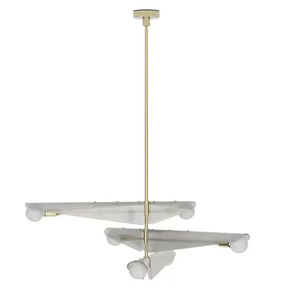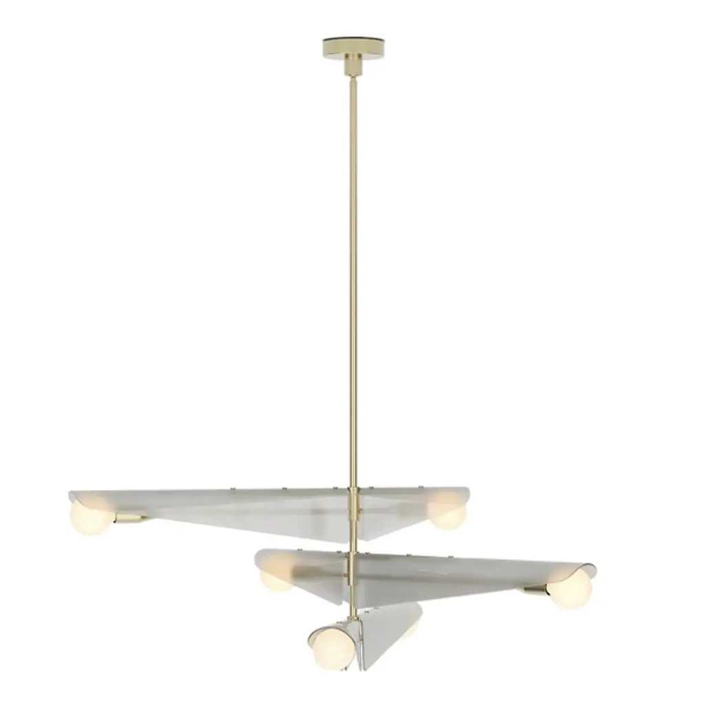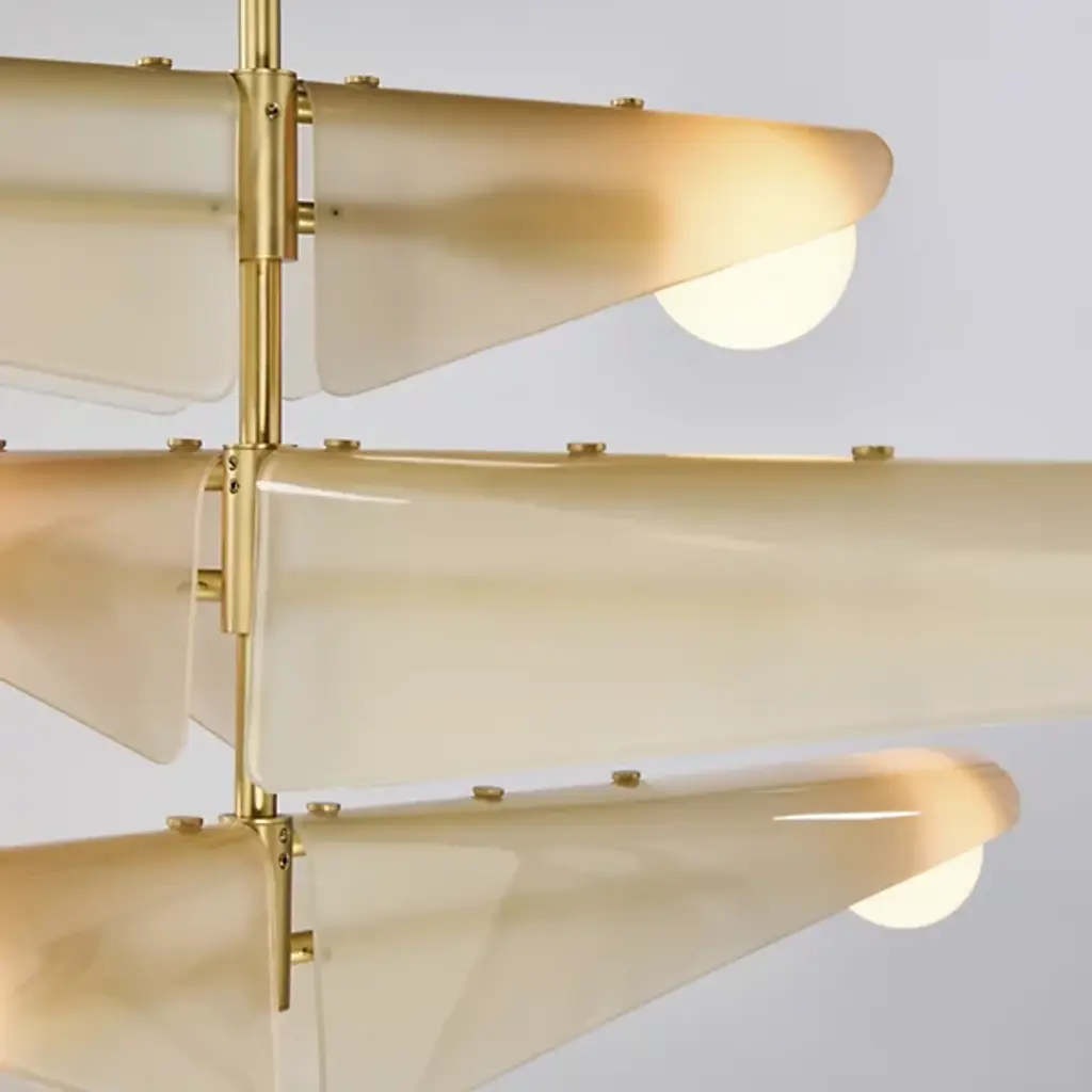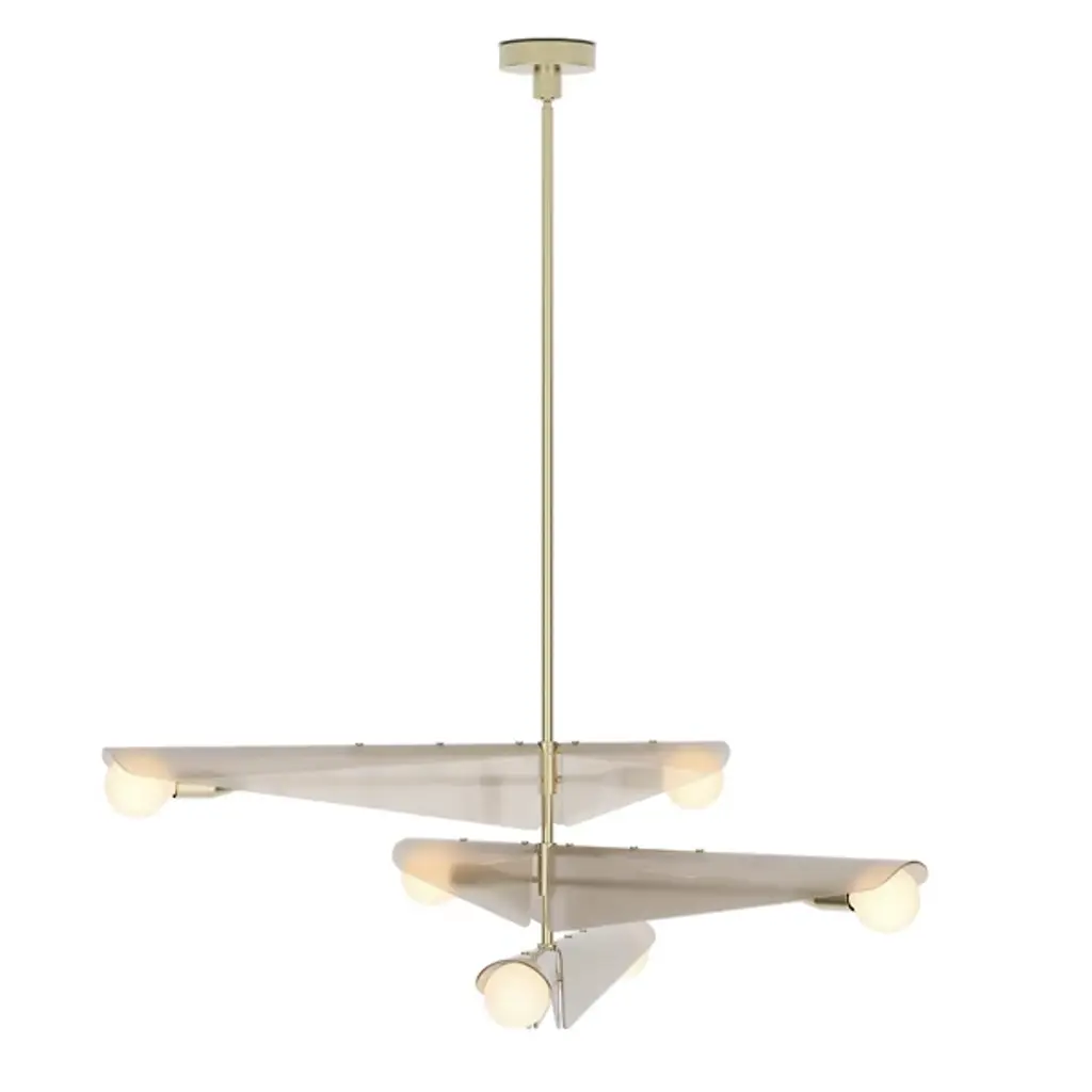 The Sycamore Chandelier from Tala draws inspiration from the graceful descent of sycamore seedpods and captures their natural elegance. It features glass wings that curve around a brushed solid brass frame, and it mimics the translucent quality of the seedpods and pays homage to the changing seasons. It casts a warm glow throughout any room, and this product will add natural beauty to your home to create a tranquil ambiance.