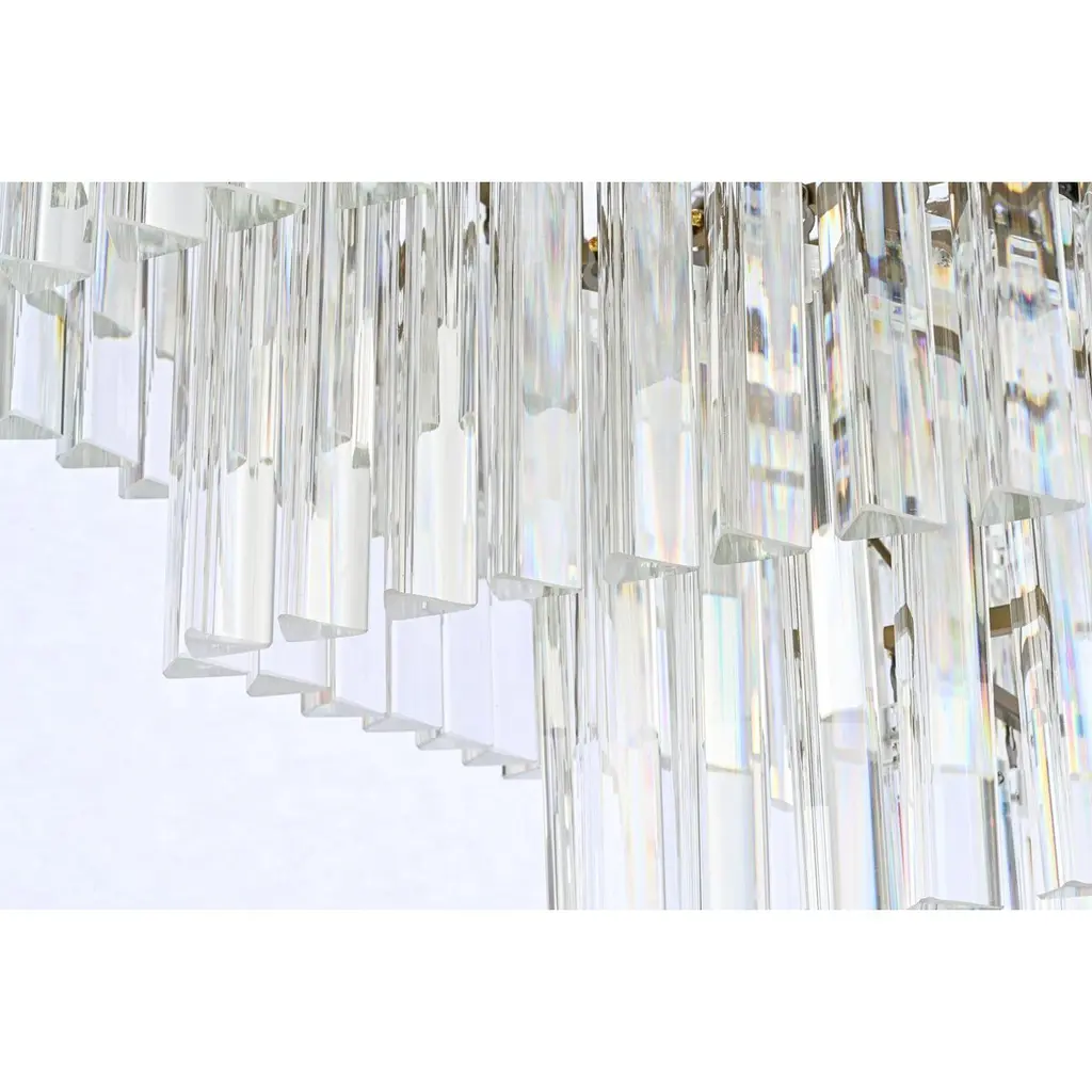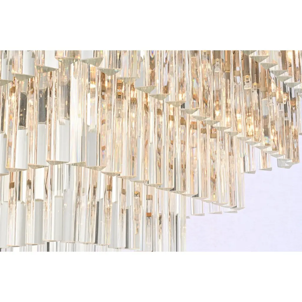 Illuminate your space with the mesmerizing beauty of our modern glam crystal lighting. This exquisite fixture features long, slender shimmering triangular crystal rods suspended from a durable iron frame. With multiple layers of crystals, it creates a captivating cascade of light that will transform your dining table, living room, or office into a dazzling haven. The modern glam design blends seamlessly with various interior styles, while the high-quality materials ensure durability and long-lasting brilliance. Elevate your decor with this stunning crystal lighting and immerse yourself in a world of opulence and sophistication.