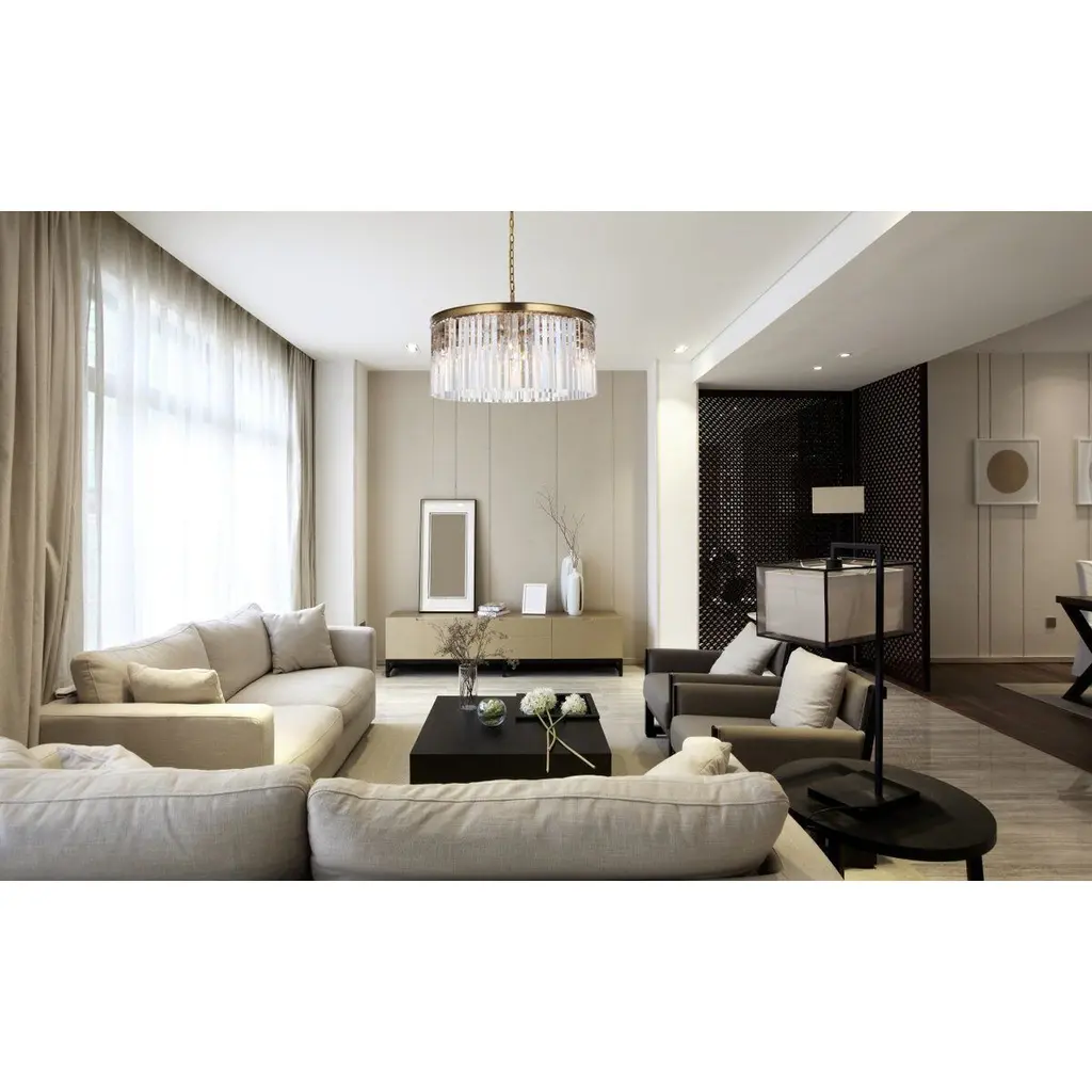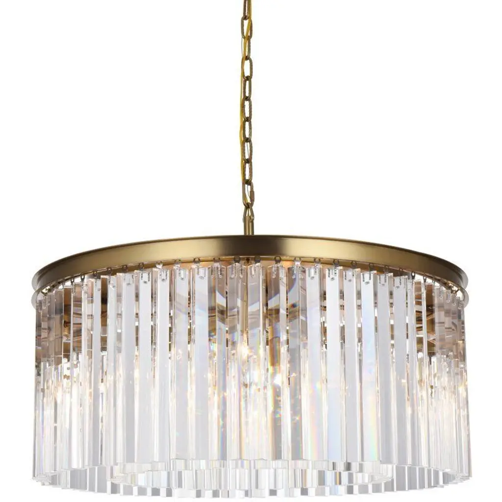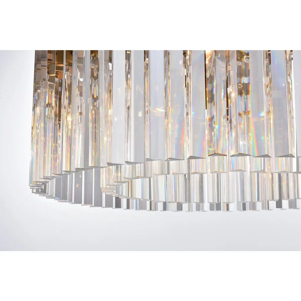 Illuminate your space with the mesmerizing beauty of our modern glam crystal lighting. This exquisite fixture features long, slender shimmering triangular crystal rods suspended from a durable iron frame. With multiple layers of crystals, it creates a captivating cascade of light that will transform your dining table, living room, or office into a dazzling haven. The modern glam design blends seamlessly with various interior styles, while the high-quality materials ensure durability and long-lasting brilliance. Elevate your decor with this stunning crystal lighting and immerse yourself in a world of opulence and sophistication.