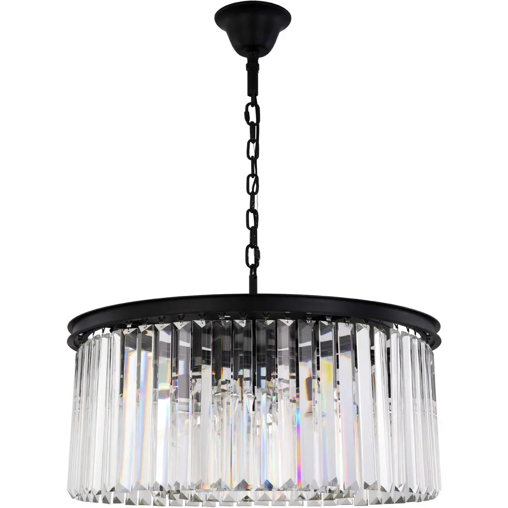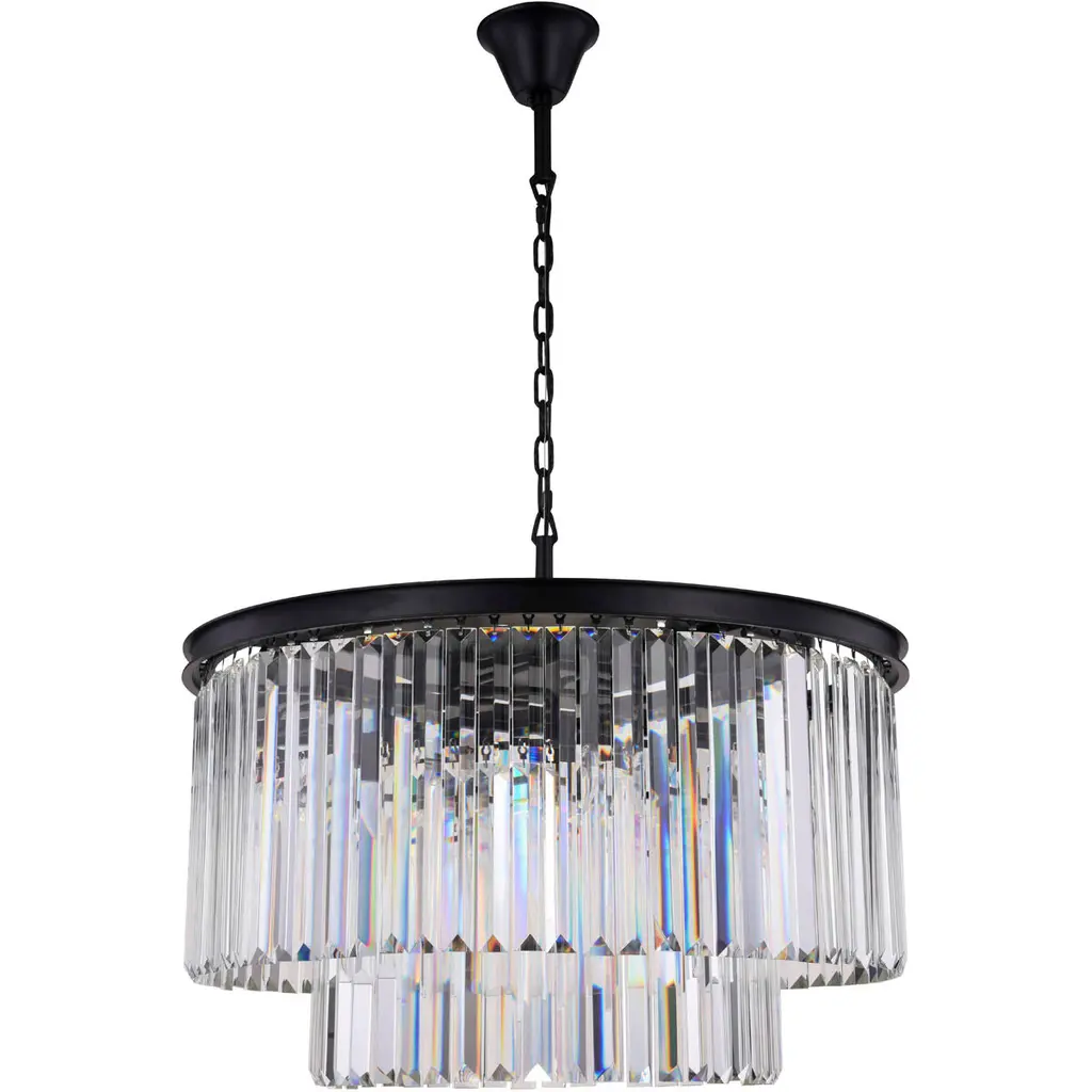 Bring the splendor of the ballroom into your home with a sparkling Sydney fixture. Stunning in foyers, dining rooms, or stairwells, the Sydney collection brings to mind the glamour of the Roaring Twenties. Features glimmering tiers of royal-cut clear, golden-teak, or silver-shade crystals. In Matte Black or polished-nickel finishes, this sturdy, yet delicate, chandelier will be the perfect centerpiece for any décor.